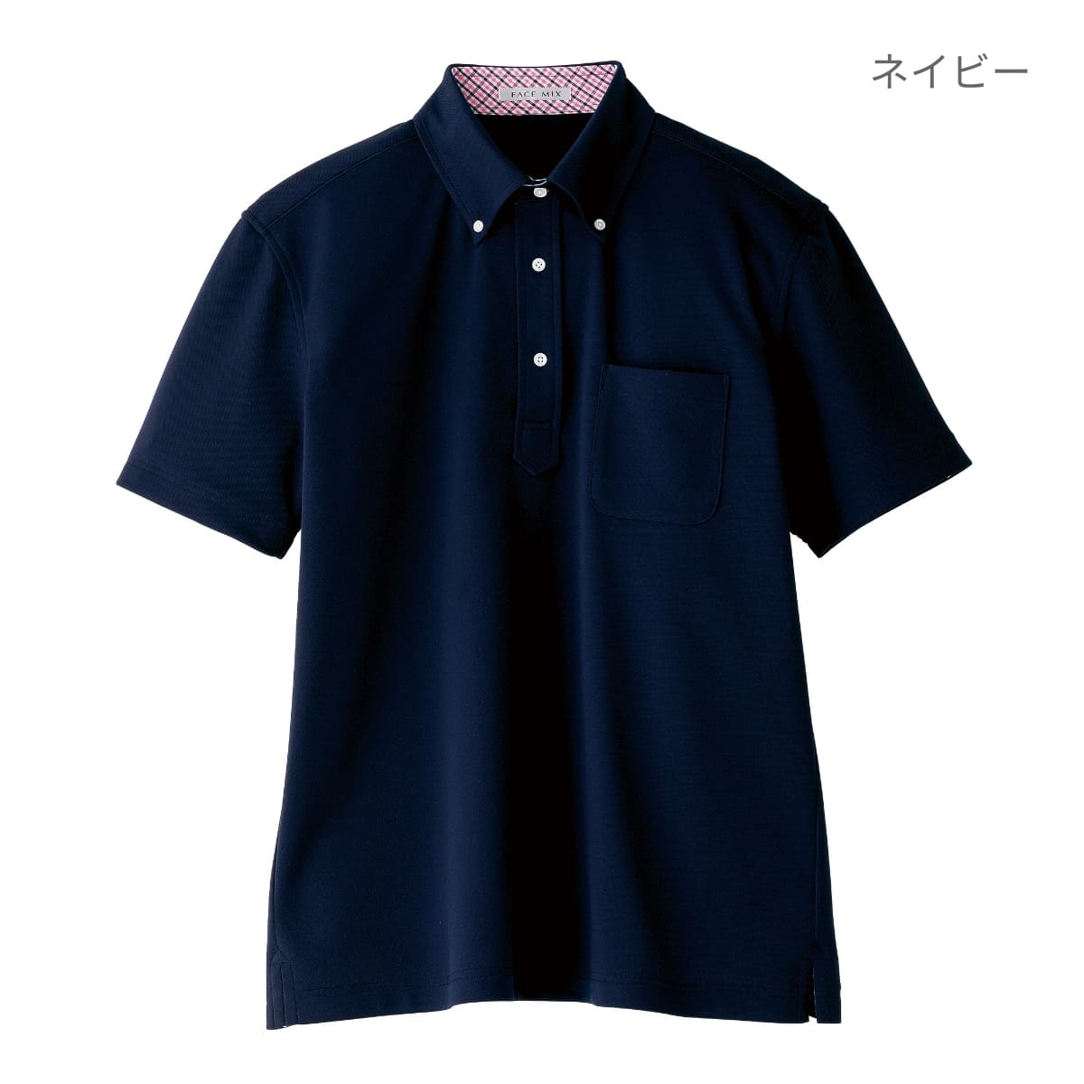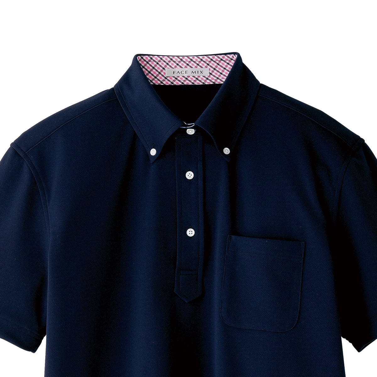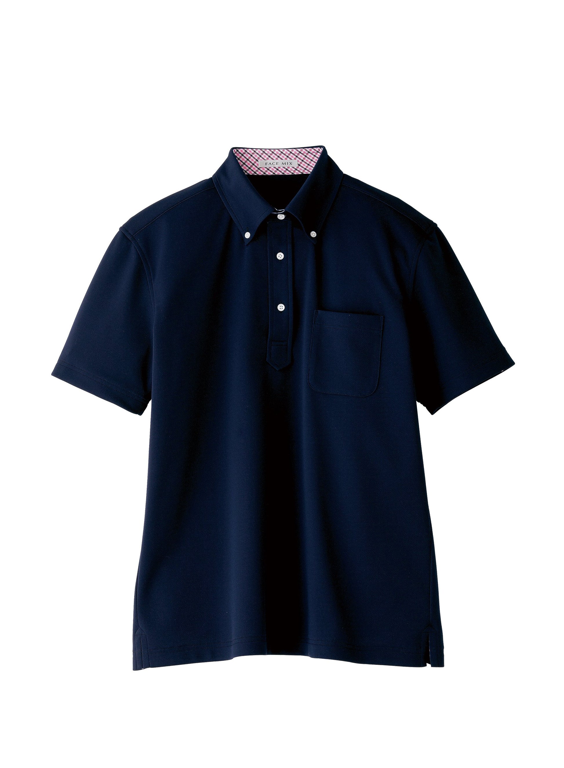 ボタンダウンで清潔感もバッチリ!衿元からチラリとのぞくチェック柄がカジュアルすぎないアクセントに。清潔感はキープしつつ、オシャレを楽しめるポロシャツです。