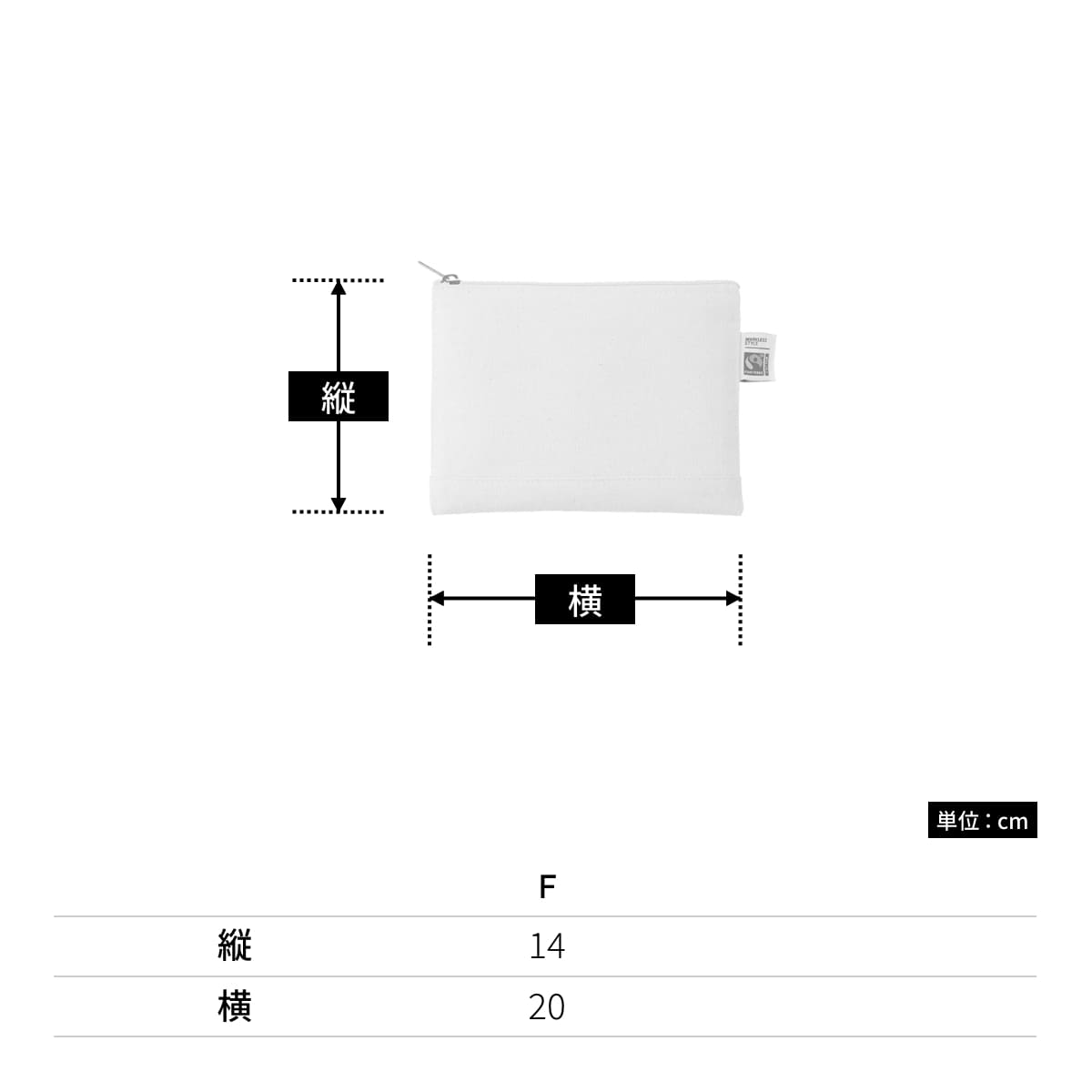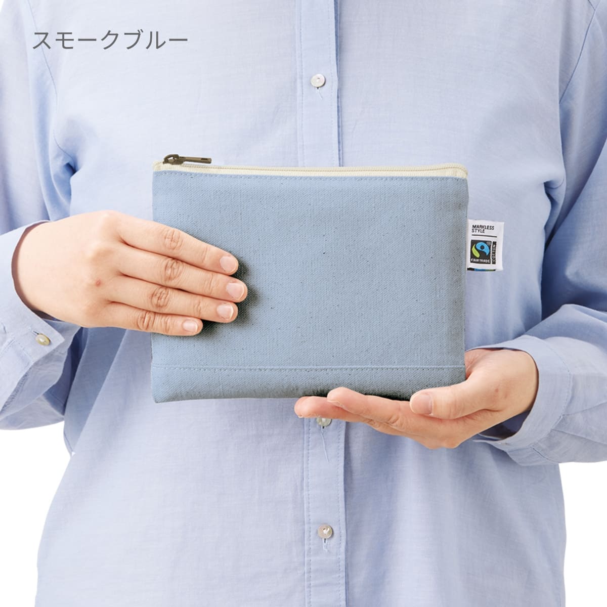 - フェアトレードコットン キャンバスフラットポーチ(L)(TF-0010)