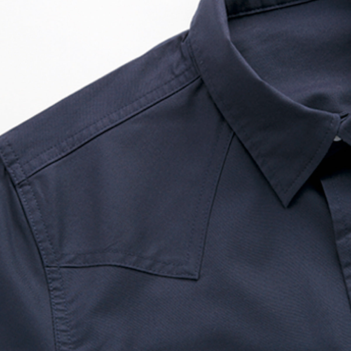 前後のヨークデザインが特徴の七分袖ウエスタンシャツが、よりベーシックなオックスフォードで登場。サービスシーンにオススメの色展開で幅広いシーンで着用して頂けます。