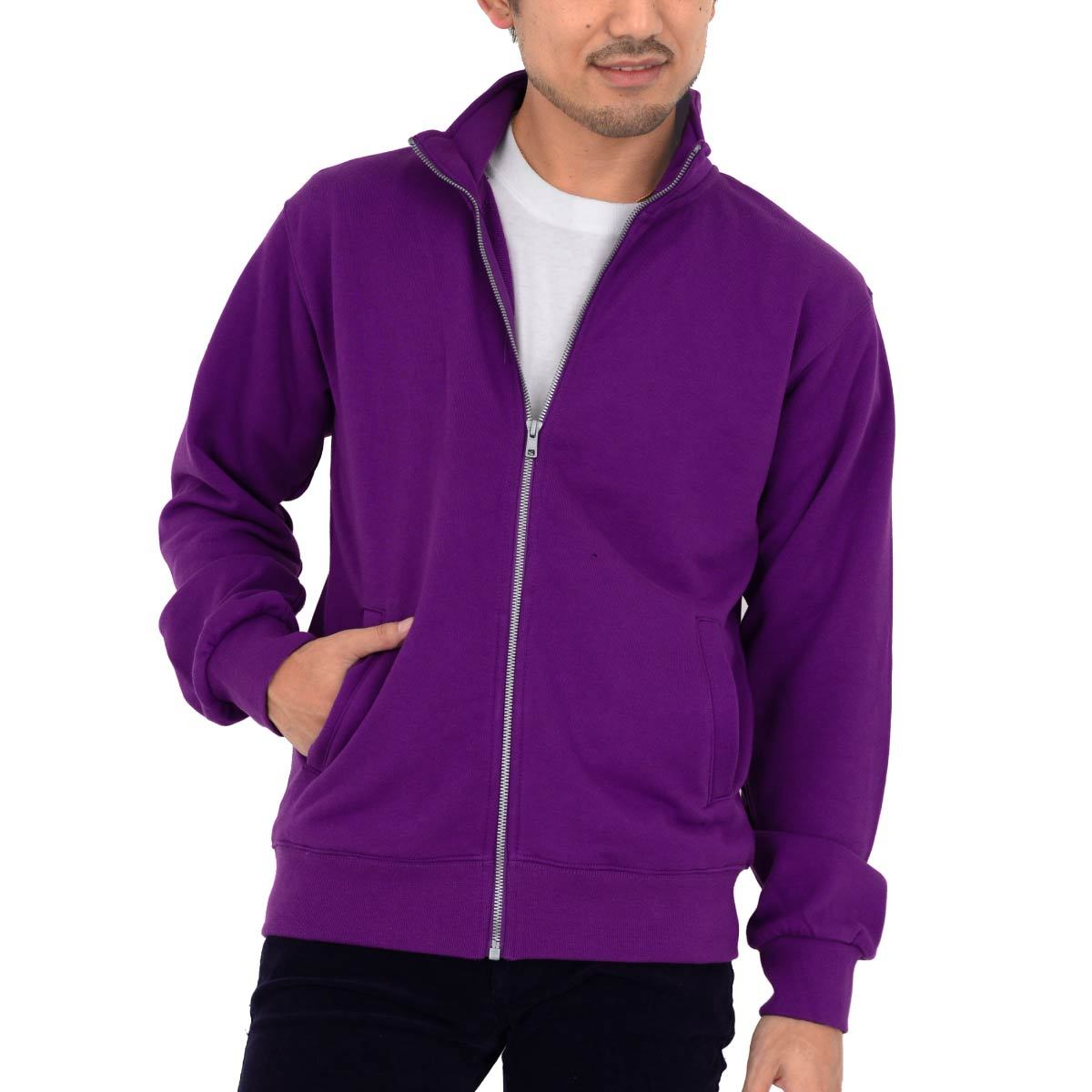 スタイリッシュなスタンドカラーのスウェットジップジャケット