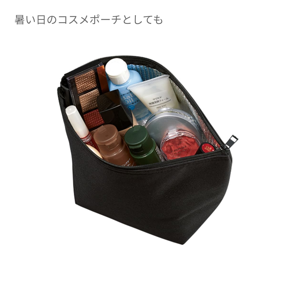小さめのランチボックスやメイク道具が収納できる保冷ポーチです。おにぎりやサンドイッチなどが入るサイズです。夏の外出時はリップやチョコレートなどを入れて持ち歩けます。コンパクトなサイズなのでバッグに入れても丁度良いサイズです。運動やスポーツ観戦、レジャーや普段使いにもおすすめです。