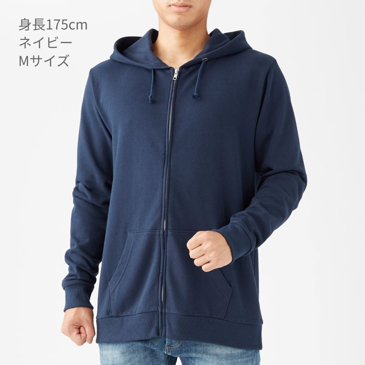 程よい生地感のジップパーカ。