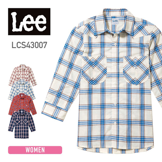 SALE レディースウエスタンチェック七分袖シャツ | カフェ・飲食店制服 | 1枚 | LCS43007 | ブルー