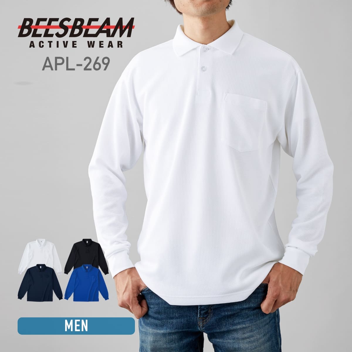 ポケット付き 長袖アクティブ ポロシャツ | メンズ | 1枚 | APL-269 | ホワイト