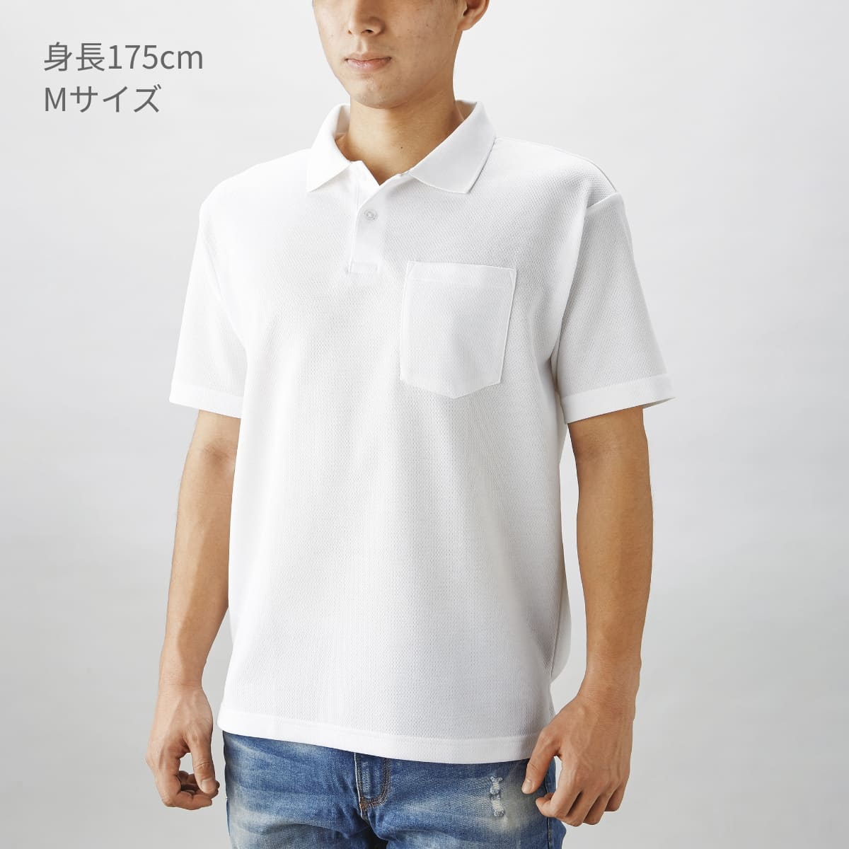 大きなポケットが魅力の裏面ドライポロシャツ。