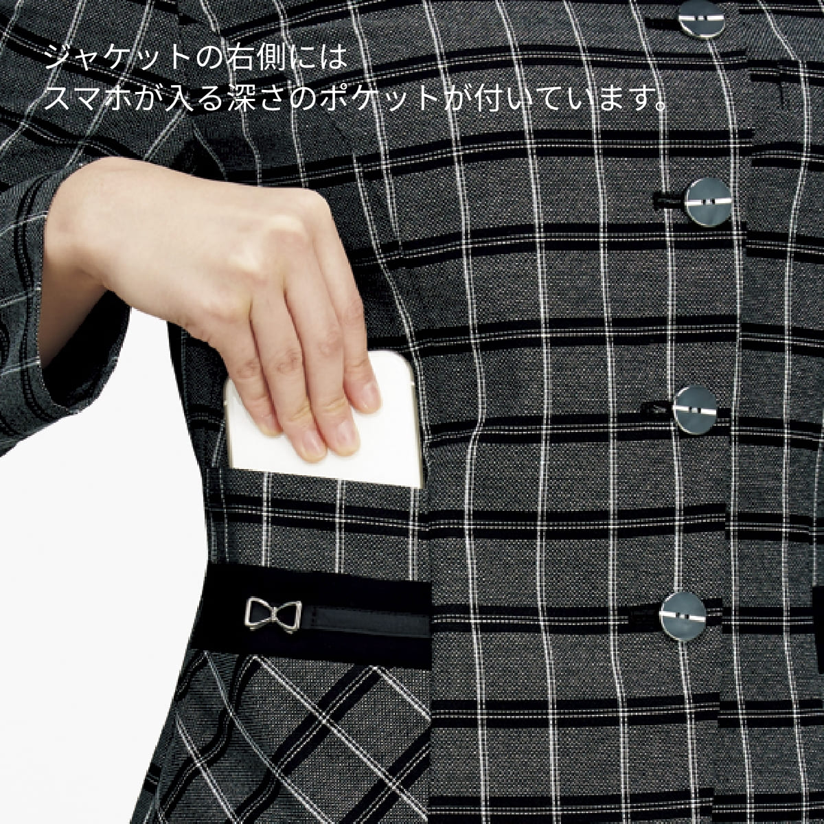 ジャケットの右側にはスマホが入る深さのポケットが付いています。