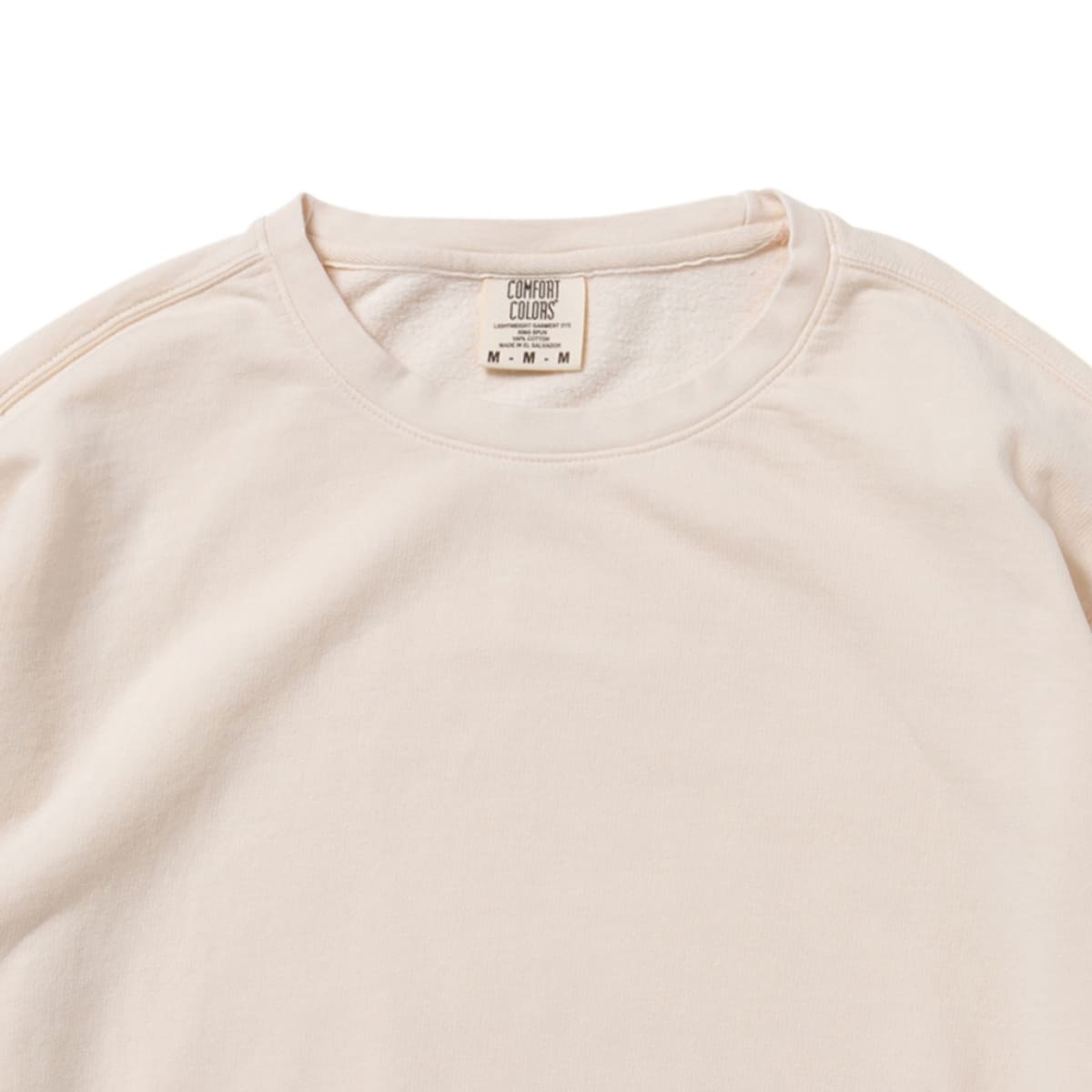 ライトウェイト6.4(oz)フリース素材にガーメントダイ(ピグメント染め)をほどこした「軽い着心地」と「おしゃれなカラーリング」が特徴のアイテムです。