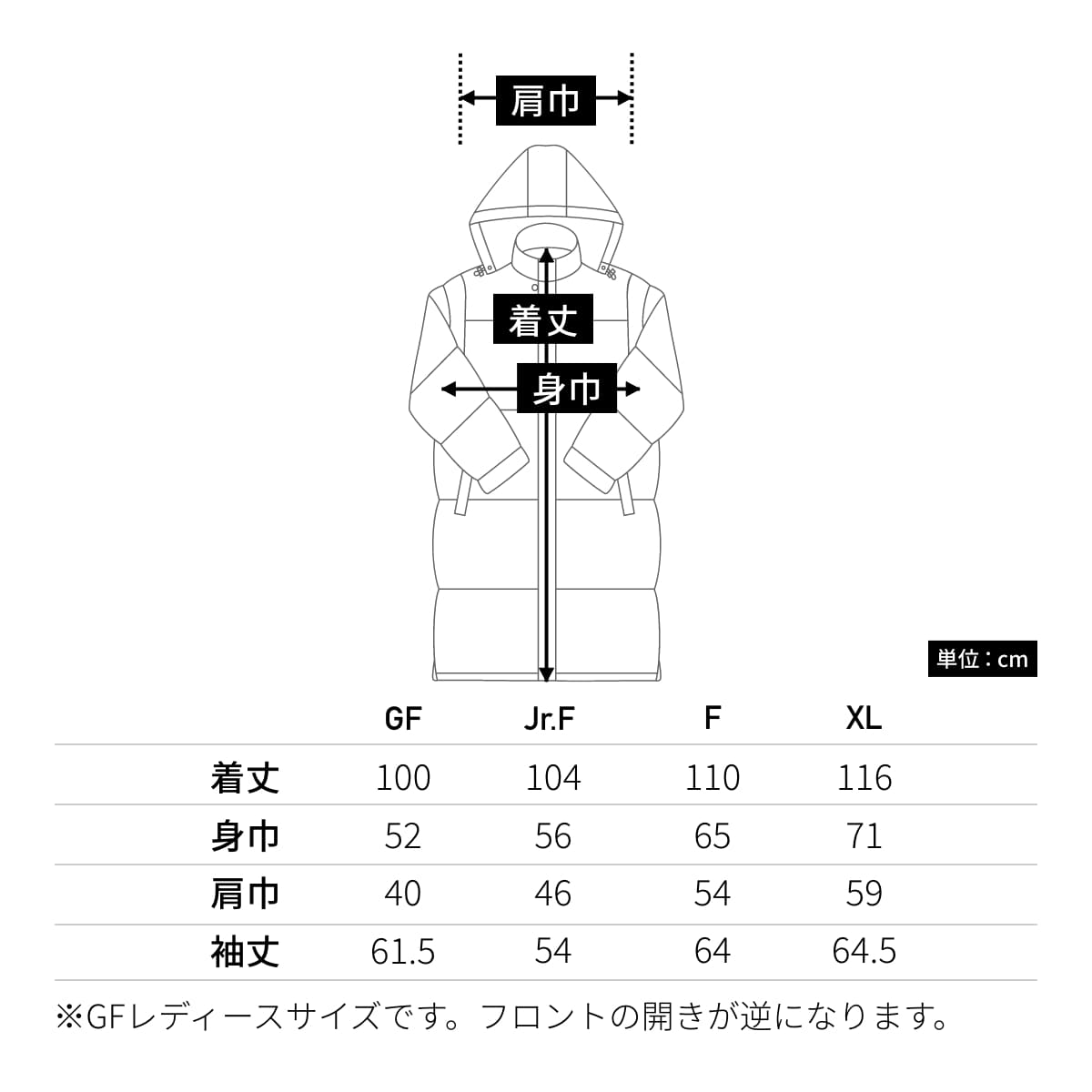 | 着丈 | 100 | 104 | 110 | 116 |