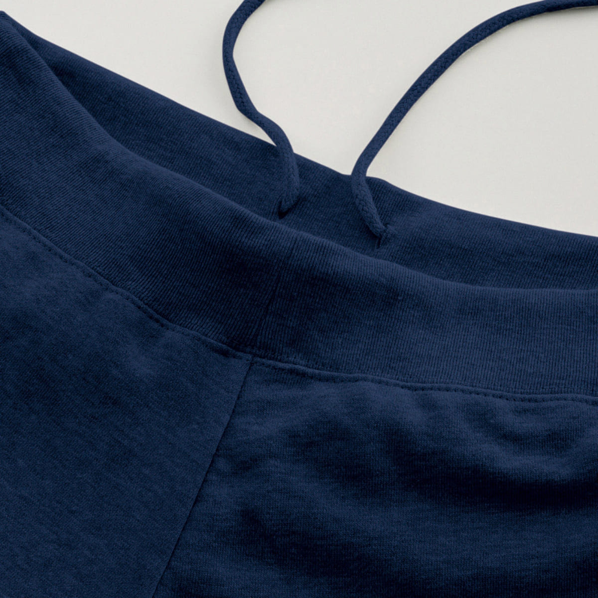 ウエスト紐はスタンダードに。裾はリブではなく、シンプルに絞っています。
