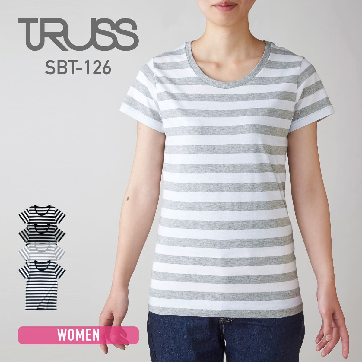 ウィメンズボーダーTシャツ | レディース | 1枚 | SBT-126 | ホワイト×ヘザーグレー