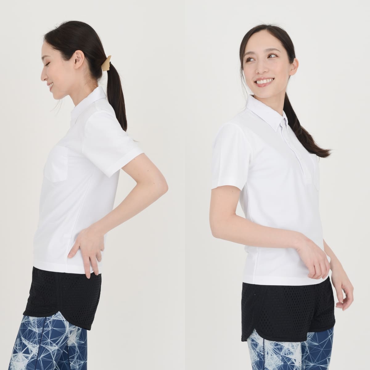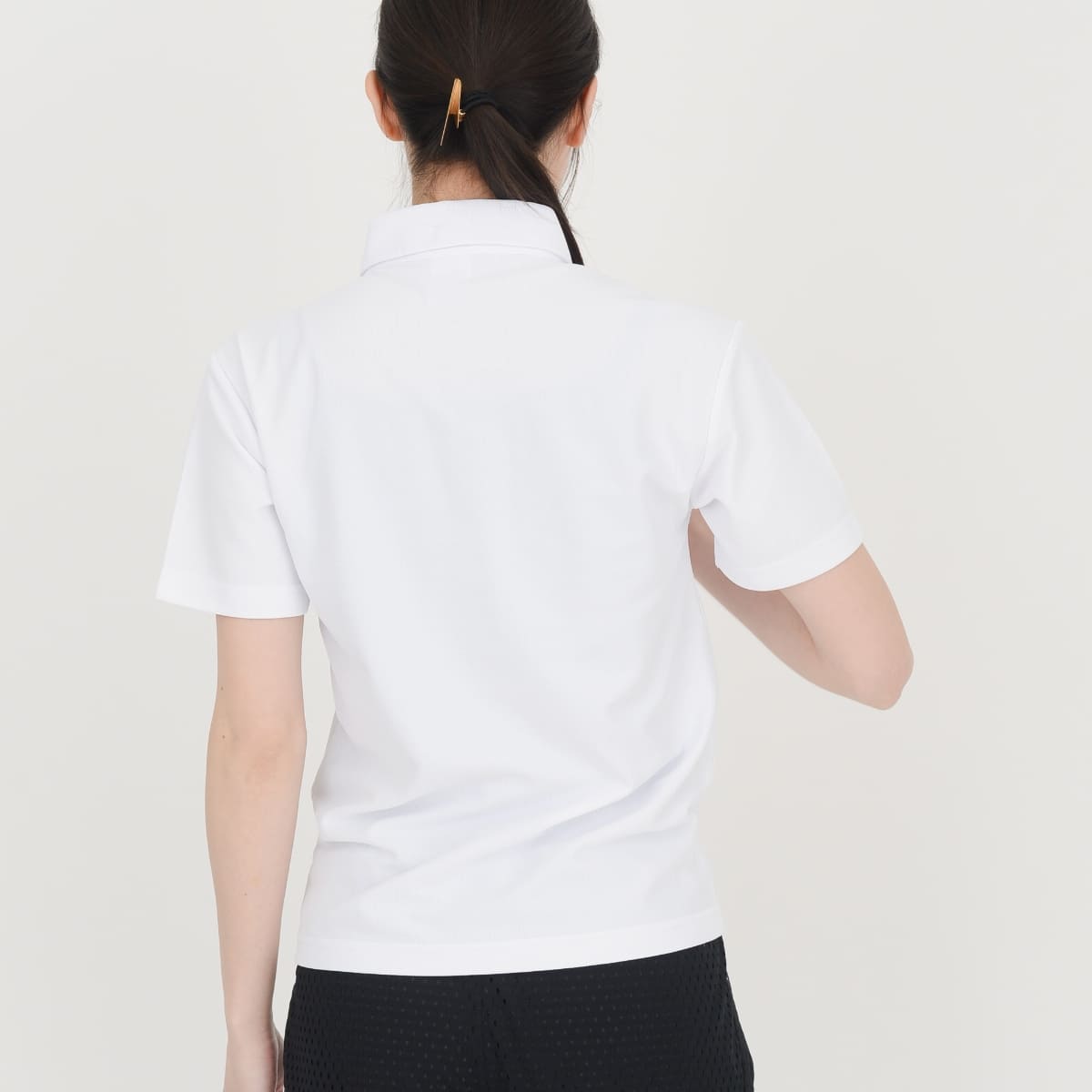 ホワイトの生地は着用時の透け感を軽減させるため特殊な糸を使用しております。