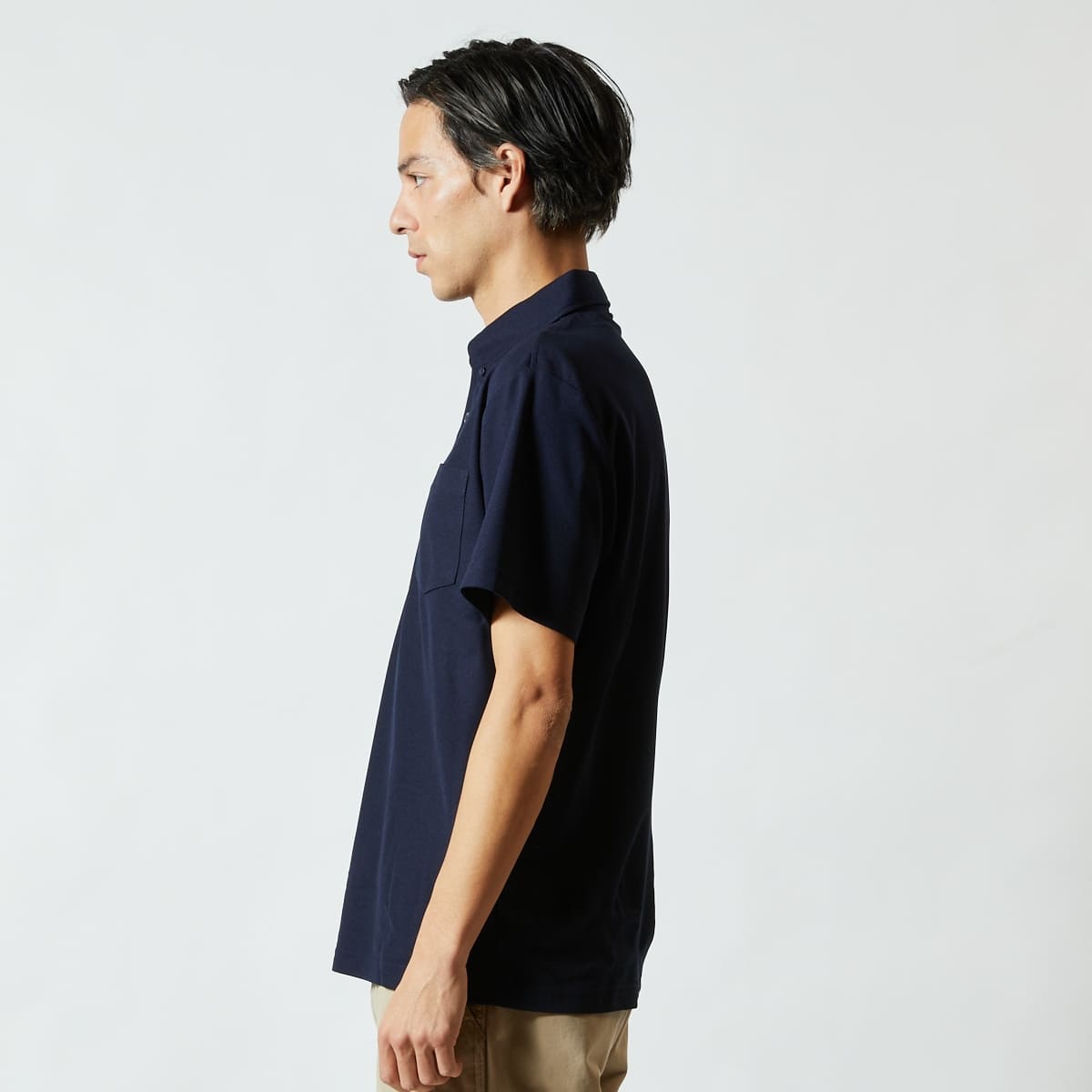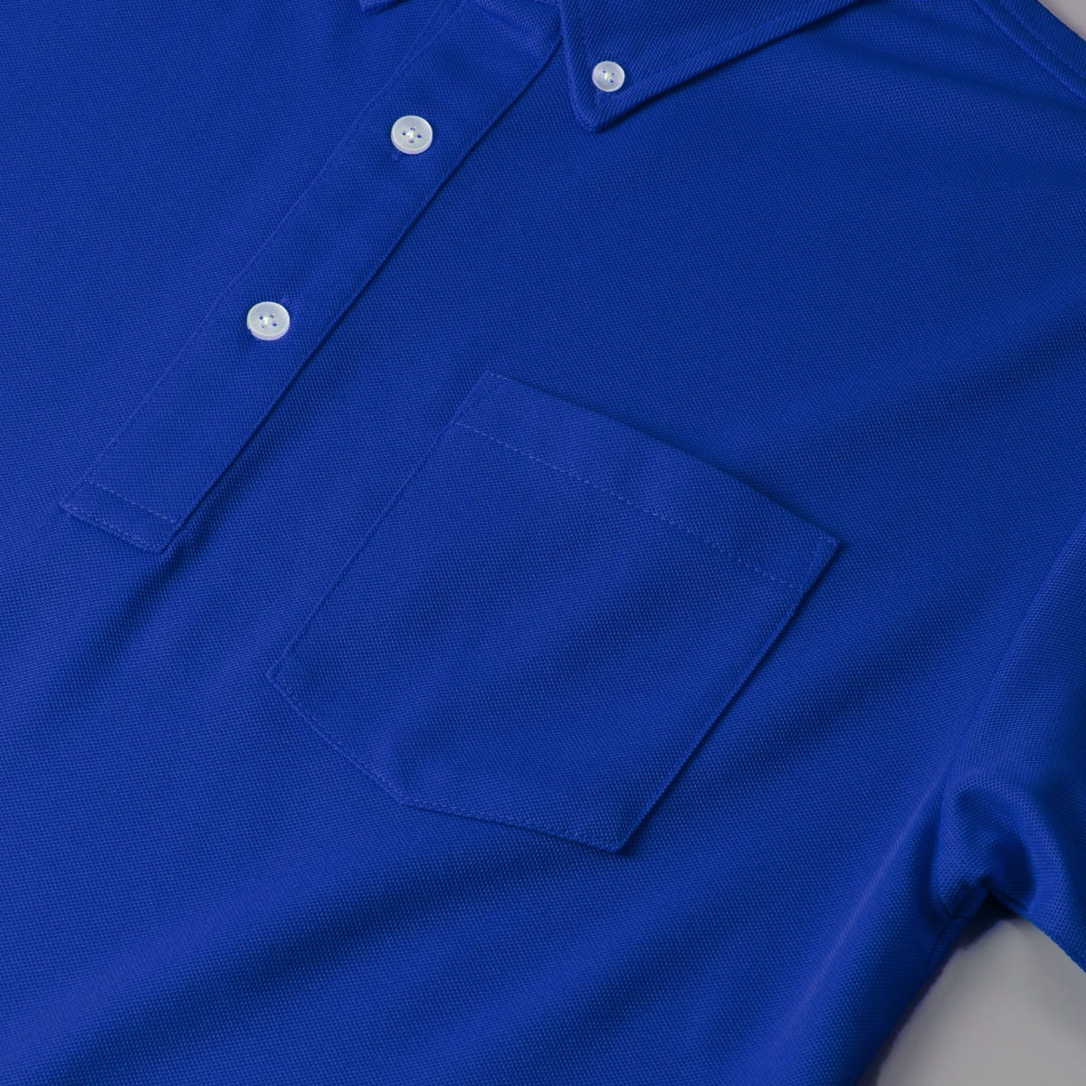 定番の綿100%鹿の子素材とは一味違うポロシャツ。ポリエステル100%で編み立てることで上質な光沢となめらかな風合いを実現。軽くサラッとした素材の快適な着心地に、何度も袖を通したくなること間違いなし。さらには洗濯後のシワ等が少なくお手入れも簡単で、きっちりと清潔感のある襟元に胸ポケットも兼備したビジネスシーンにも大活躍のポロシャツです。