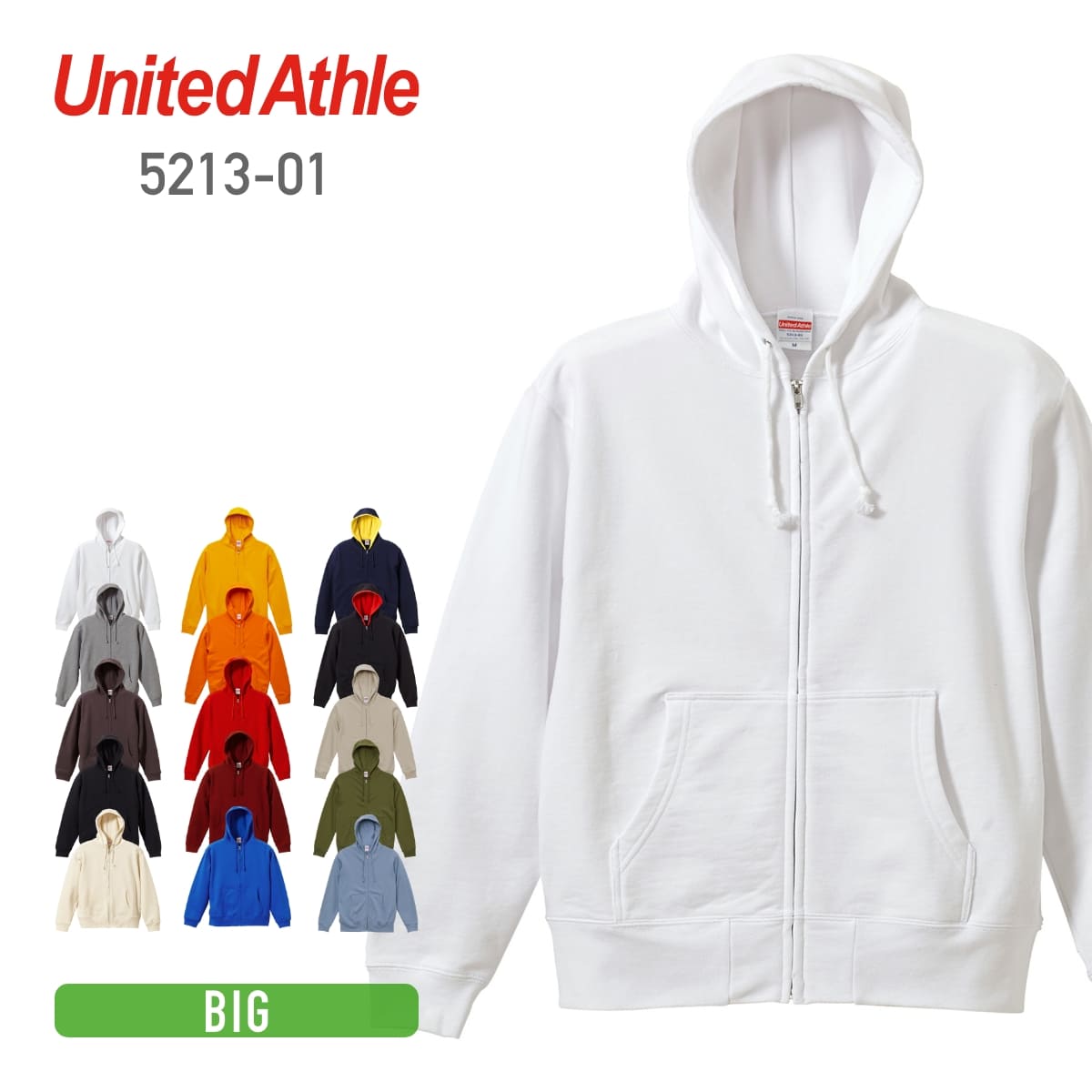 10.0オンス スウェット フルジップ パーカ(パイル) | ビッグサイズ | 1枚 | 5213-01 | ホワイト