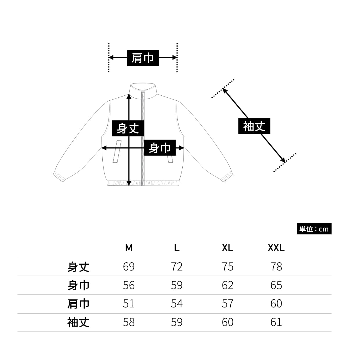| 身丈 | 69 | 72 | 75 | 78 |