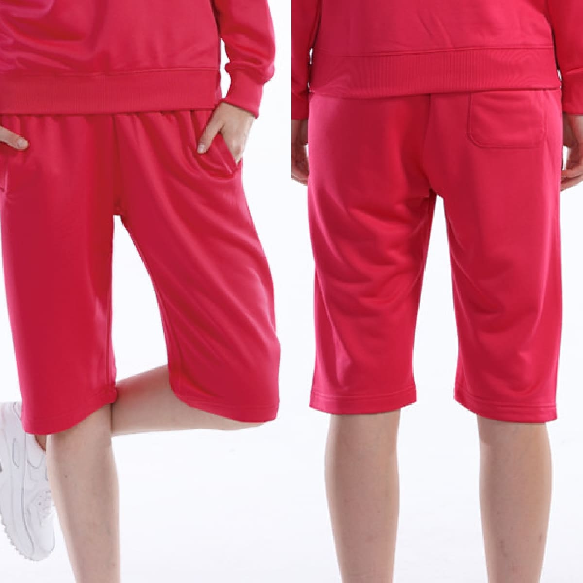 少し長めのハーフパンツタイプのスウェットパンツは洗練されたスポーツウェアのイメージで、どんな競技にも合わせやすく人気です。