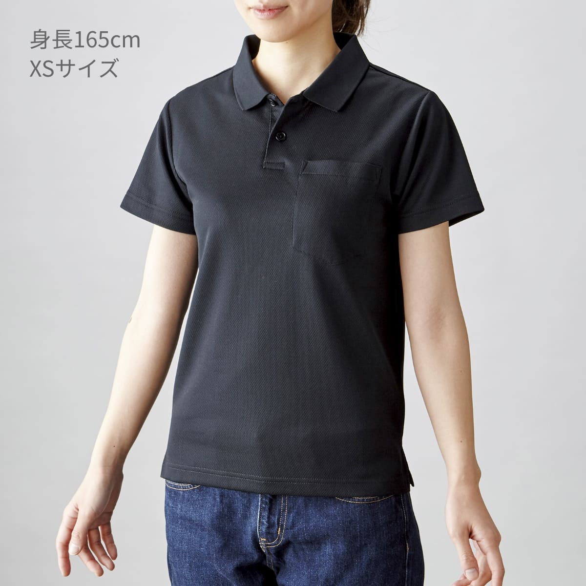 大きなポケットが魅力の裏面ドライポロシャツ。