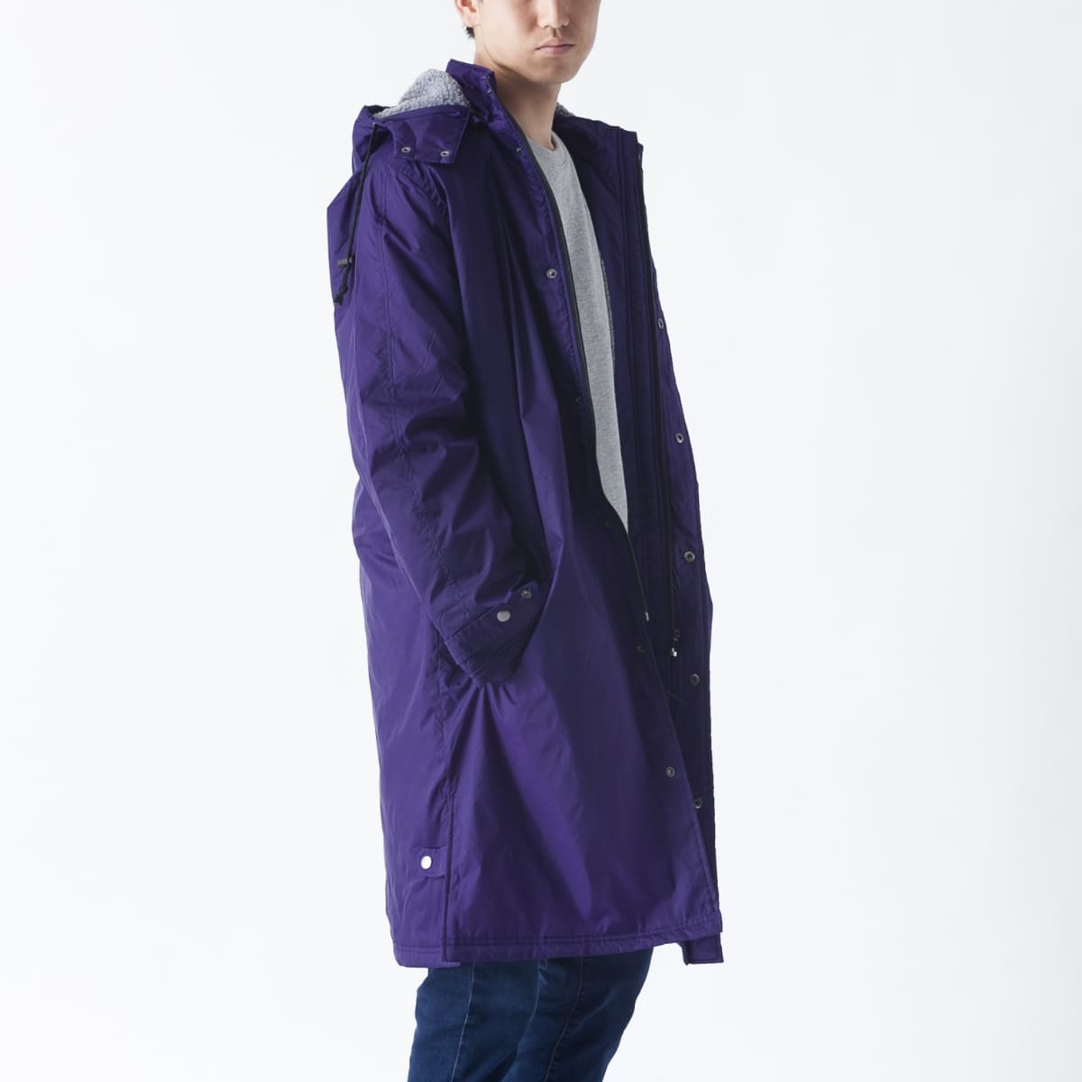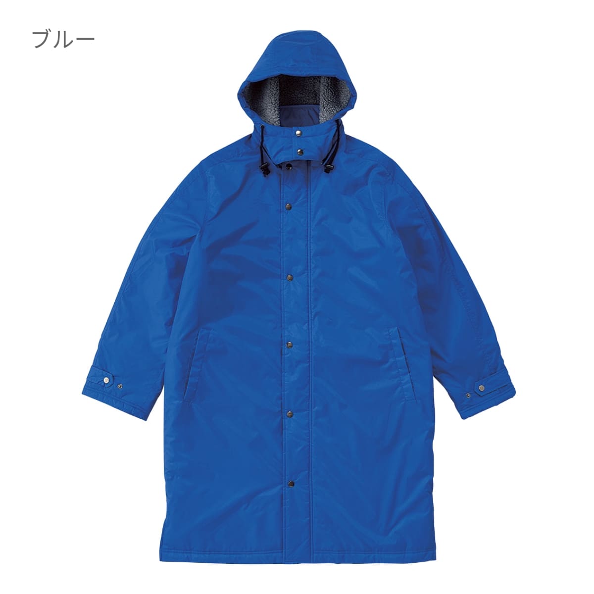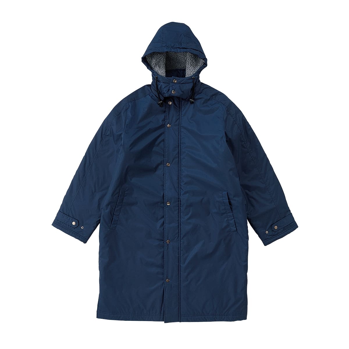 冬の屋外に最適な、ボア付きナイロンベンチコート。