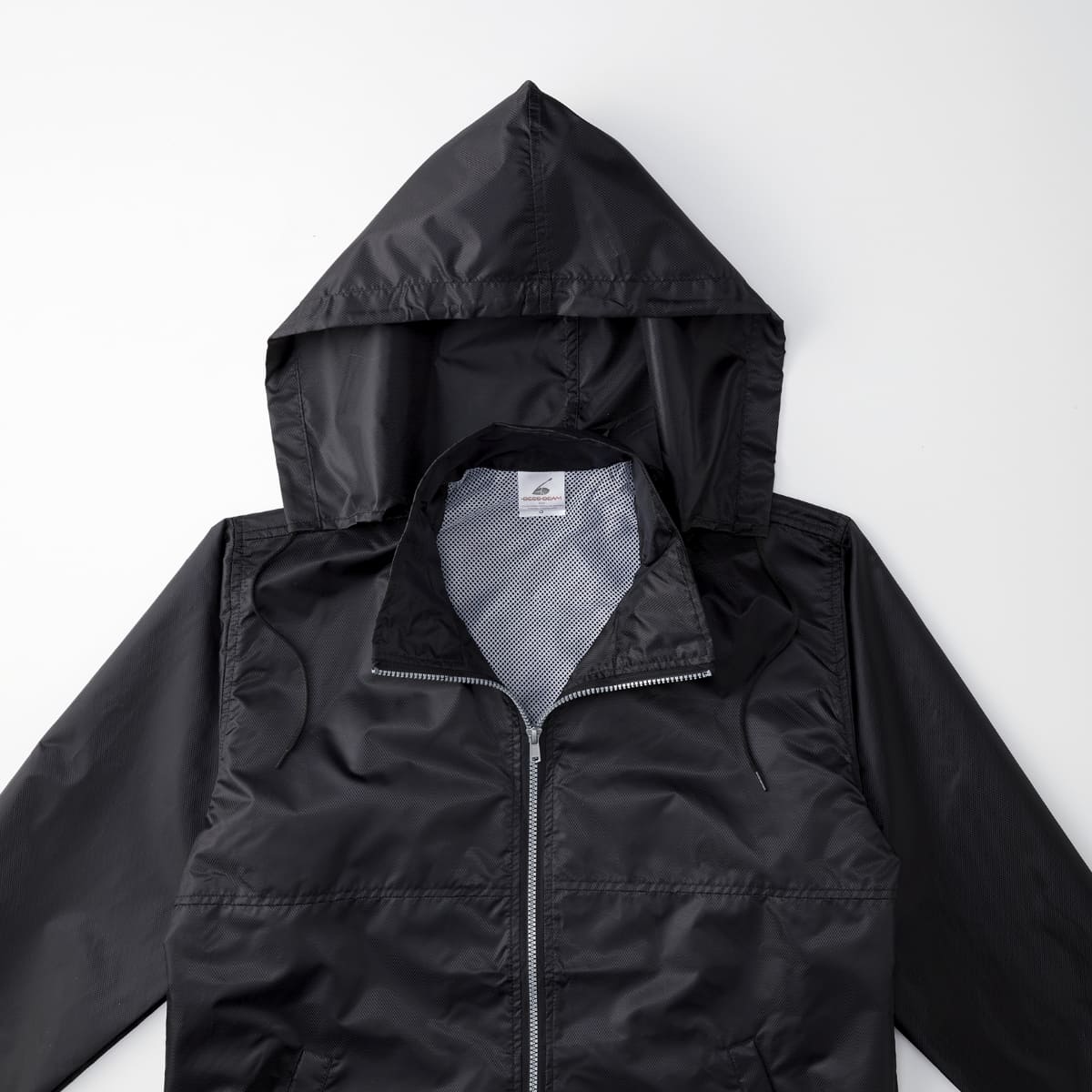 襟にフードを収納:襟にフードを収納していますので、突然の風や雨にも素早く対応することができます。天候が大きく影響する屋外のイベントなどに最適です。
