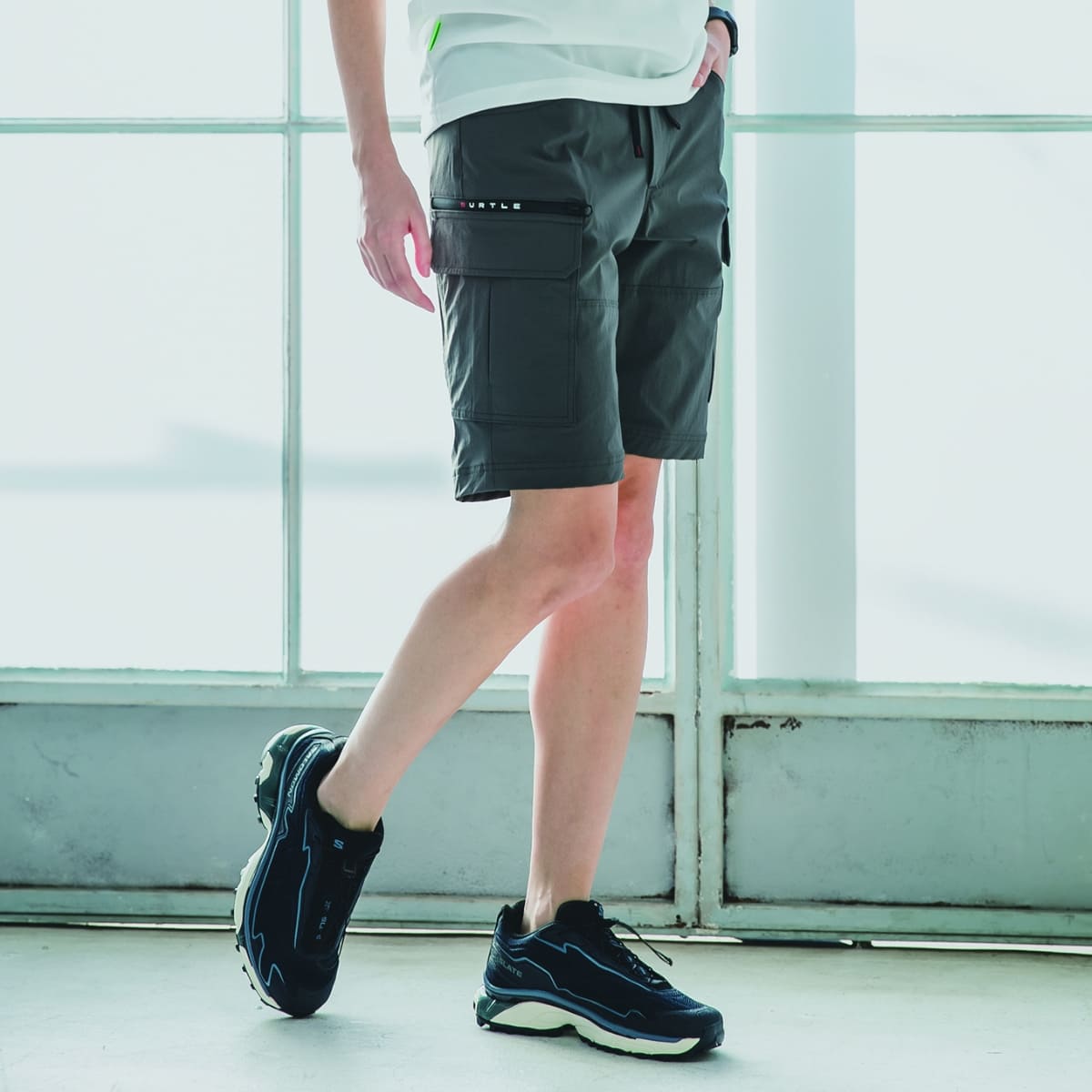 テーパードシルエットのテックパンツ