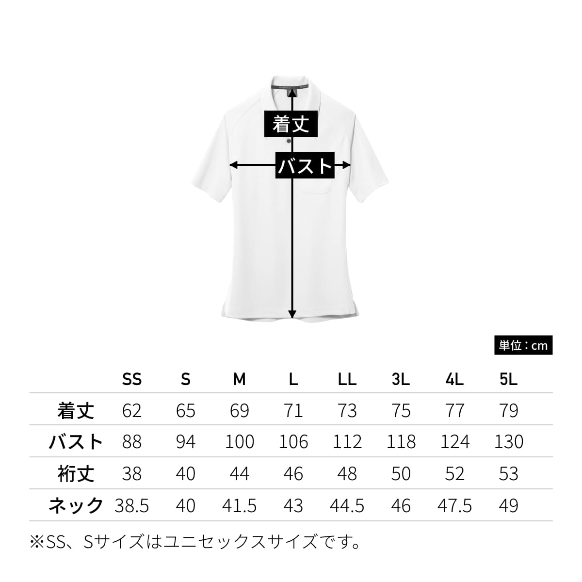 | 着丈 | 62 | 65 | 69 | 71 | 73 | 75 | 77 | 79 |