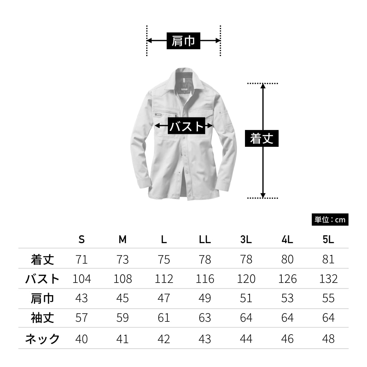 | 着丈 | 71 | 73 | 75 | 78 | 78 | 80 | 81 |