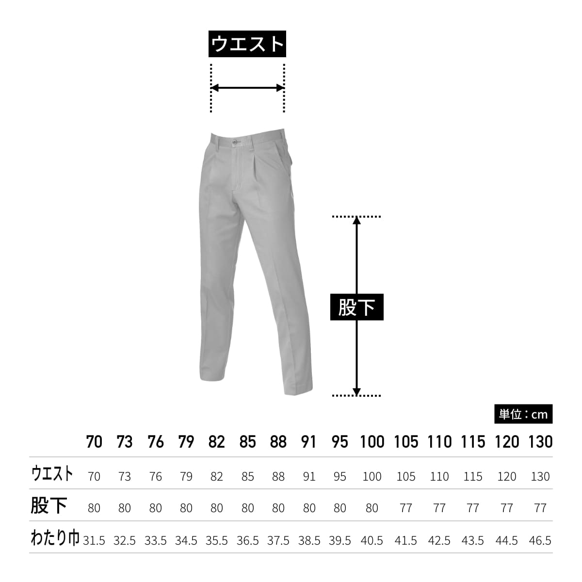| ウエスト | 70 | 73 | 76 | 79 | 82 | 85 | 88 | 91 | 95 | 100 | 105 | 110 | 115 | 120 | 130 |