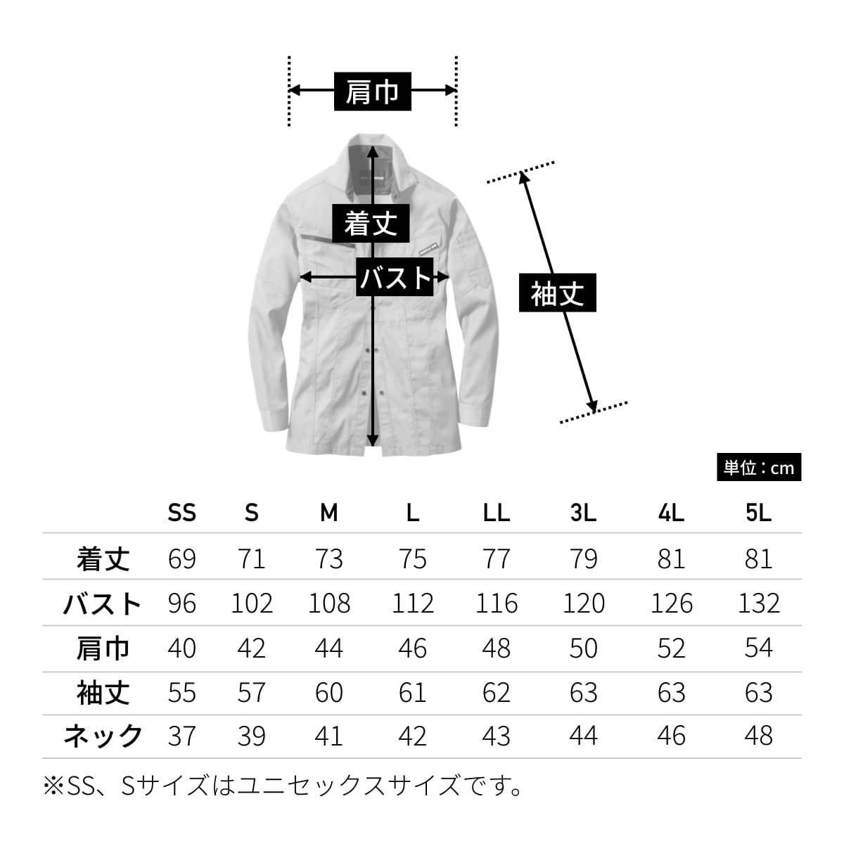 | 着丈 | 69 | 71 | 73 | 75 | 77 | 79 | 81 | 81 |