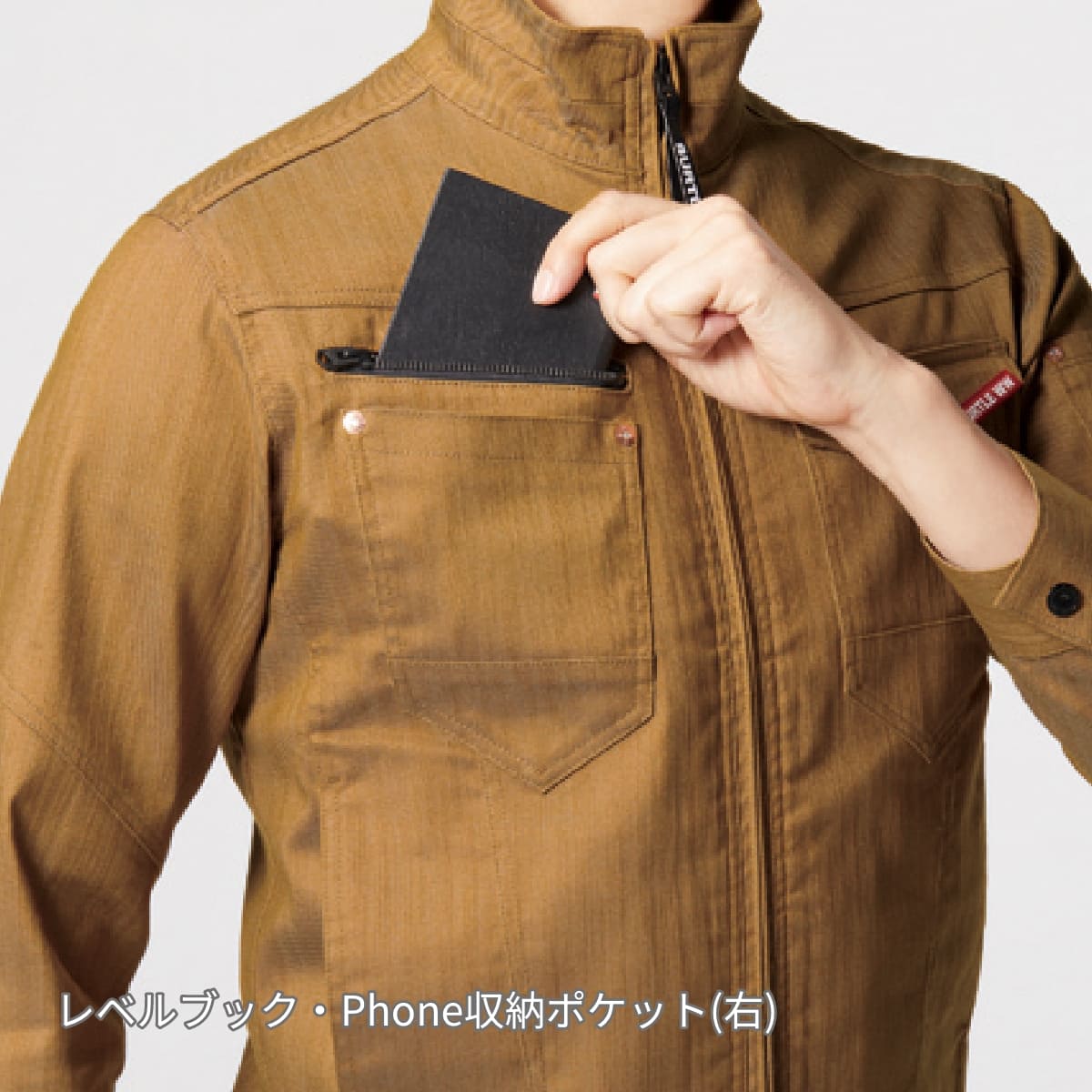 仕様:交織ストレッチツイル(伸縮率17%)、制電ケア設計