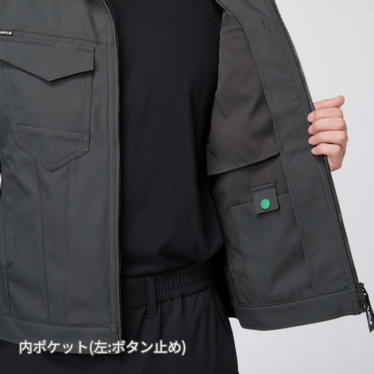 素材:エコストレッチダブルツイル(伸長率25%)、エコディア(東レ)、制電ケア設計