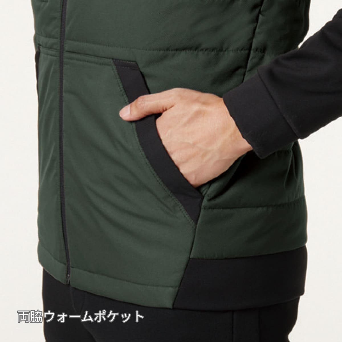 2種の高機能素材をブレンドしたハイブリッドフーディジャケット&ベストは