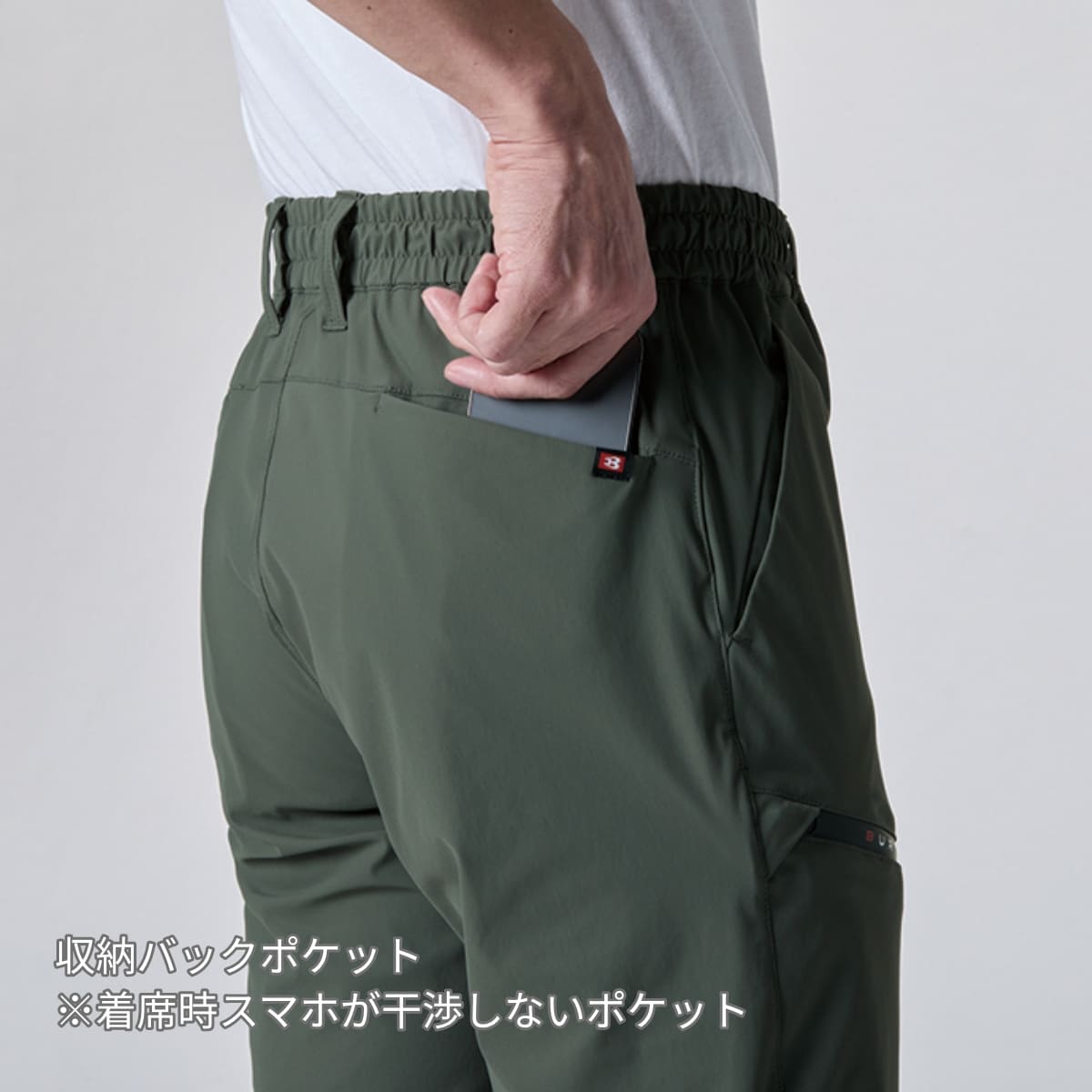 ・細身のテーパードシルエットを採用し、軽い着用感を極めたイージーパンツ