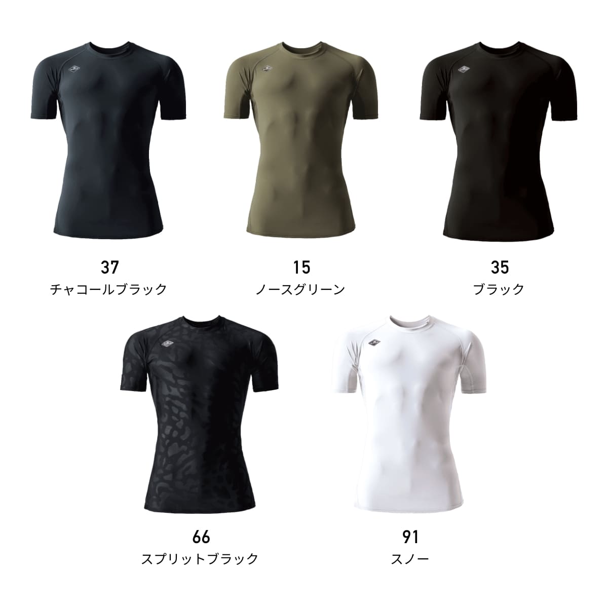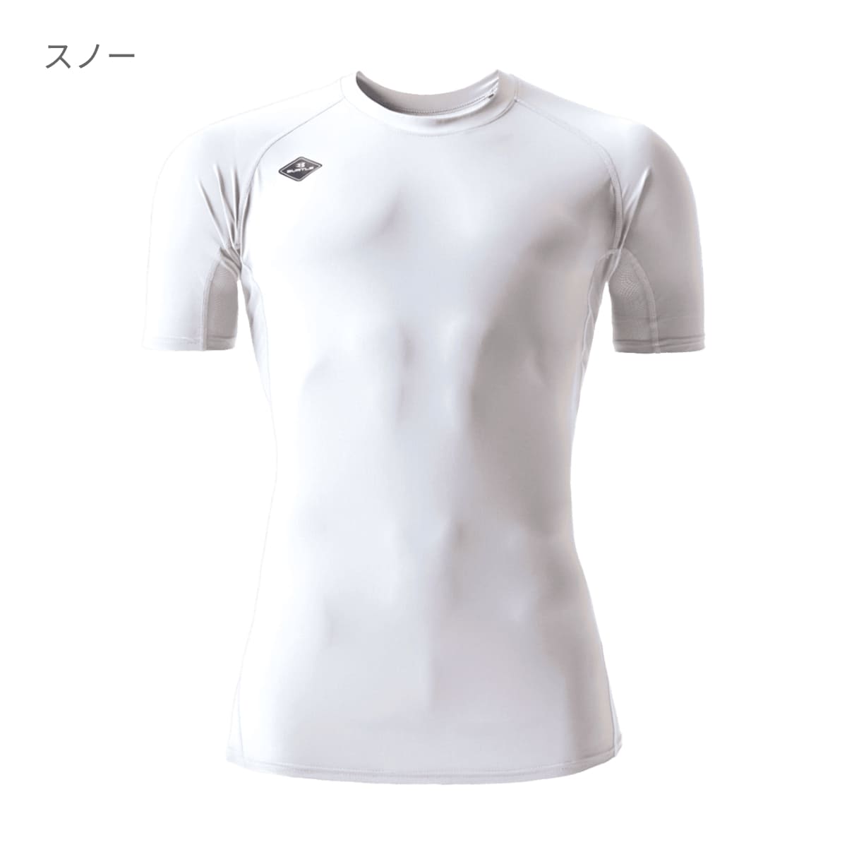 吸汗速乾加工、UVカット(UPF50+)、接触冷感(Q-max0.36)、キシリトール冷感プリント(脇・股メッシュ)
