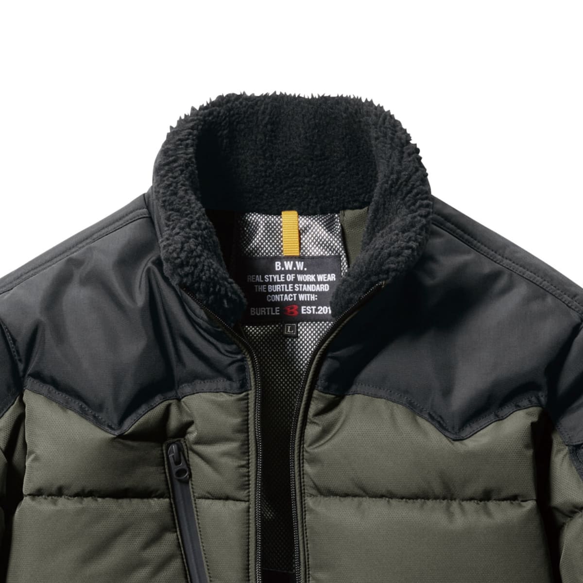 ・スタンド衿廻りに温もり感たっぷりなシープボアを採用