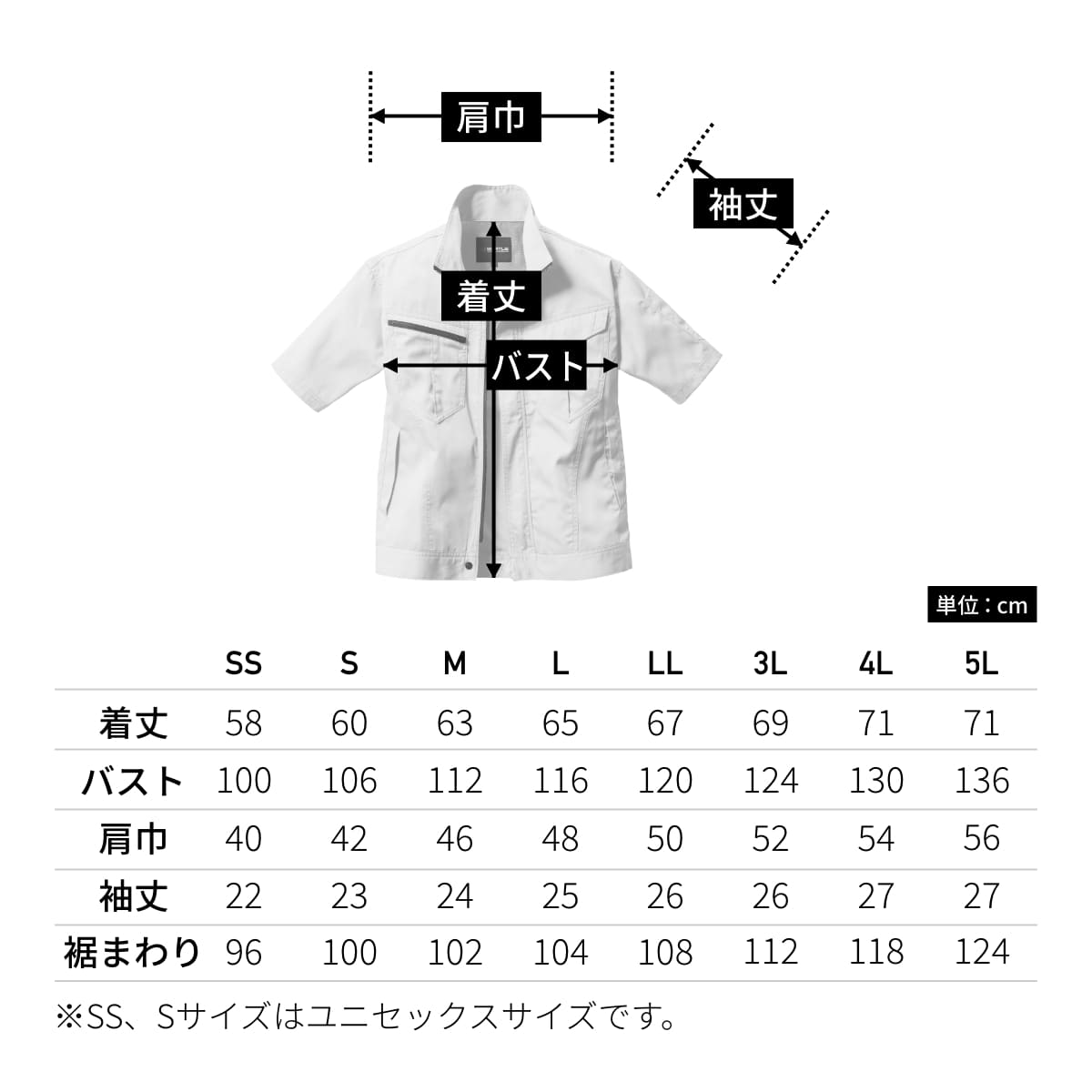 | SS | S | M | L | LL | 3L | 4L | 5L | |