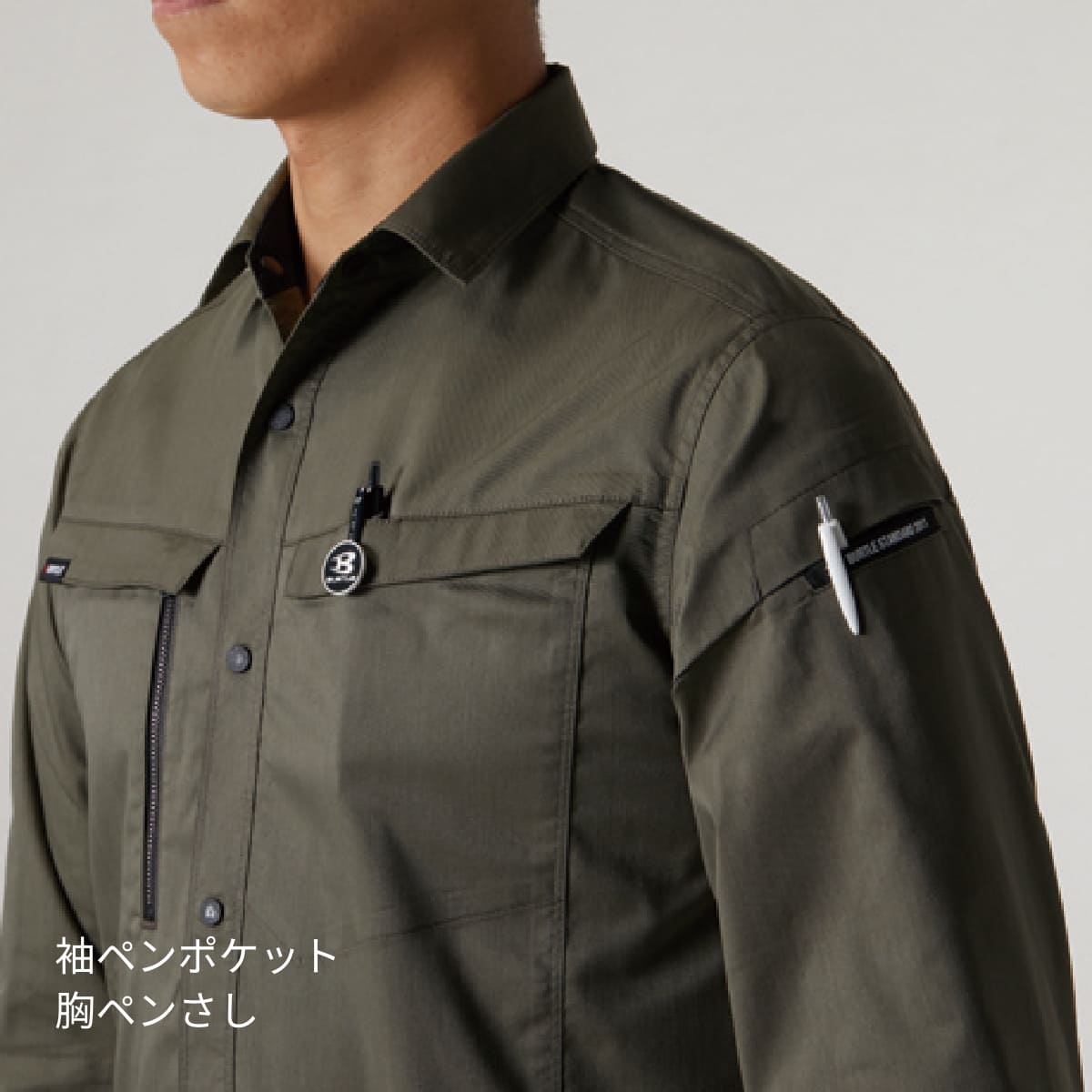 仕様:エコストレッチツイル(伸長率22%)・制電ケア設計・エコセレクション(日清紡テキスタイル)