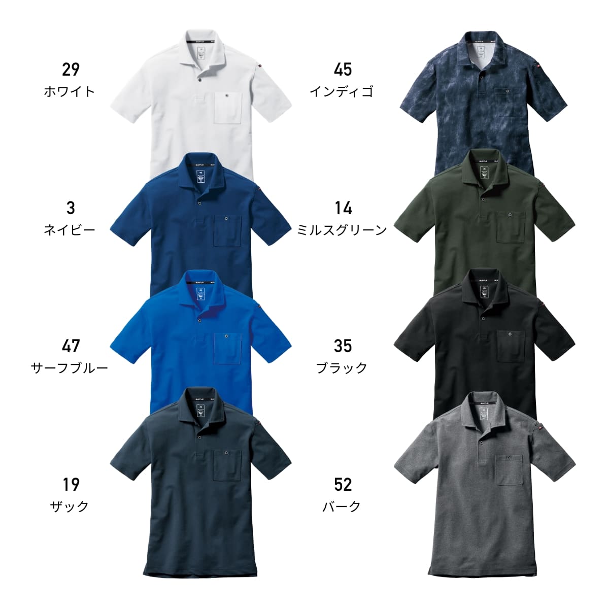 サラッとした着心地のドライ生地が人気のバートルの半袖ポロシャツ。
