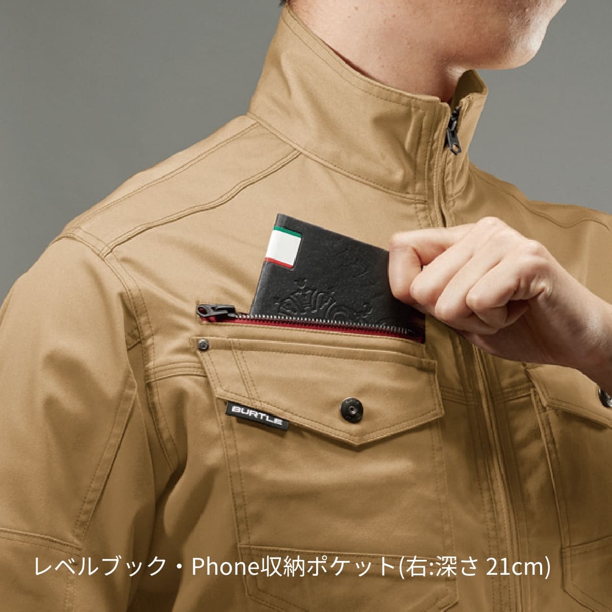 バートルデザインを象徴するユーティリティ性の高いレッドファスナーがシンボリックに映える。