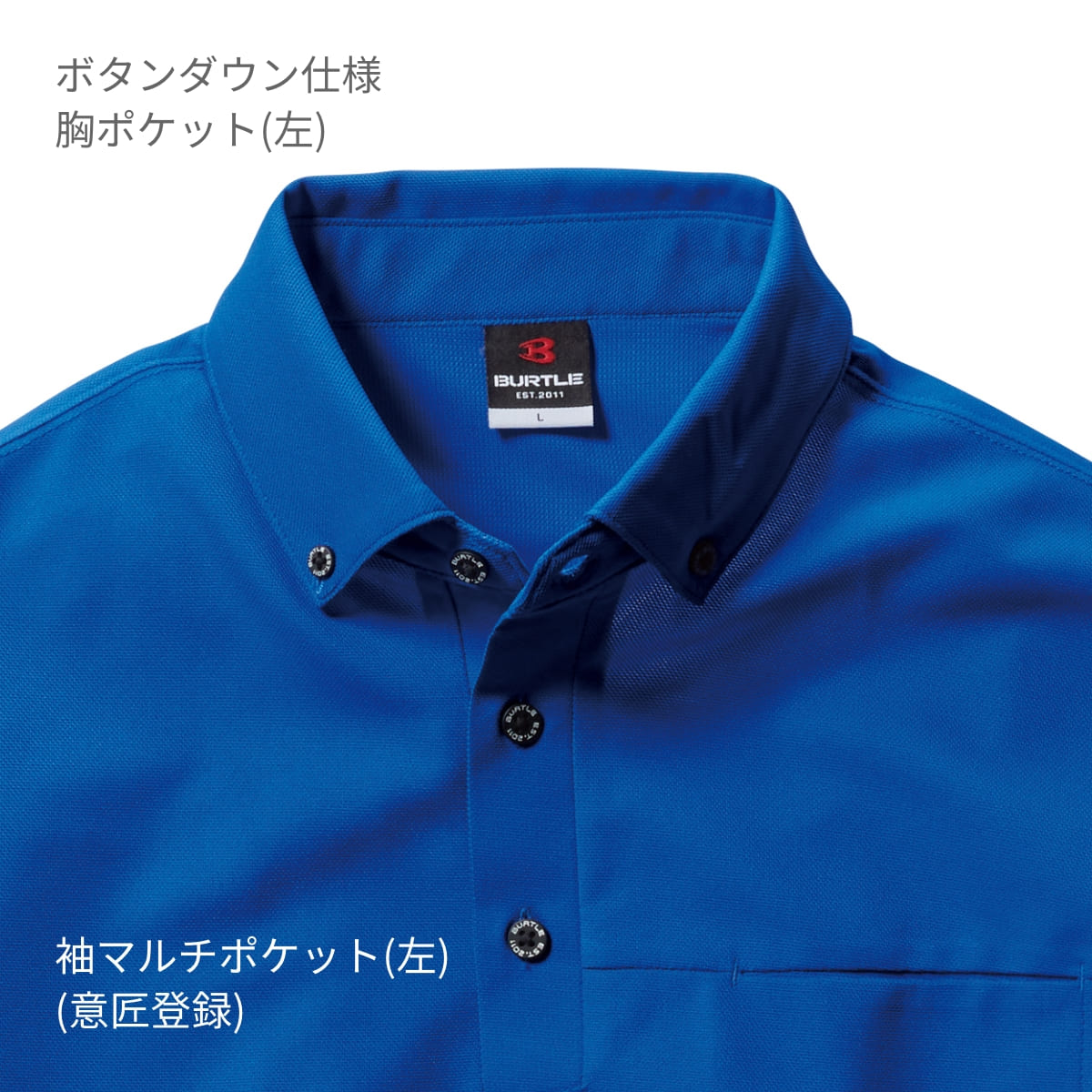 衿元のボタンダウンがフォーマルなムードを演出するSDGsに対応した