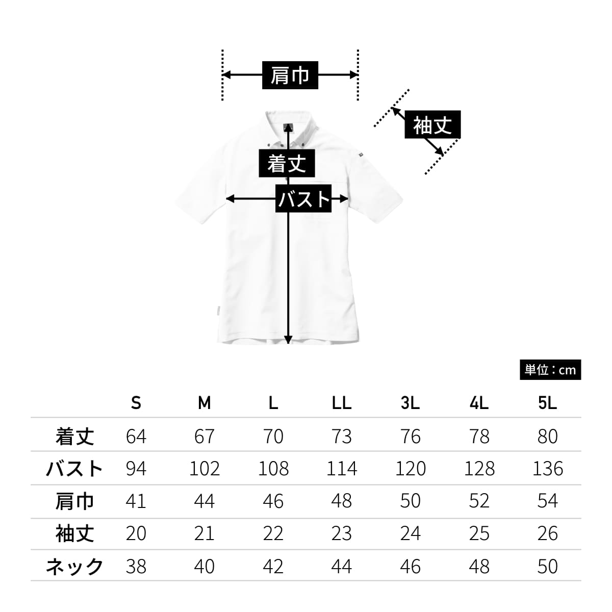 | 着丈 | 64 | 67 | 70 | 73 | 76 | 78 | 80 |
