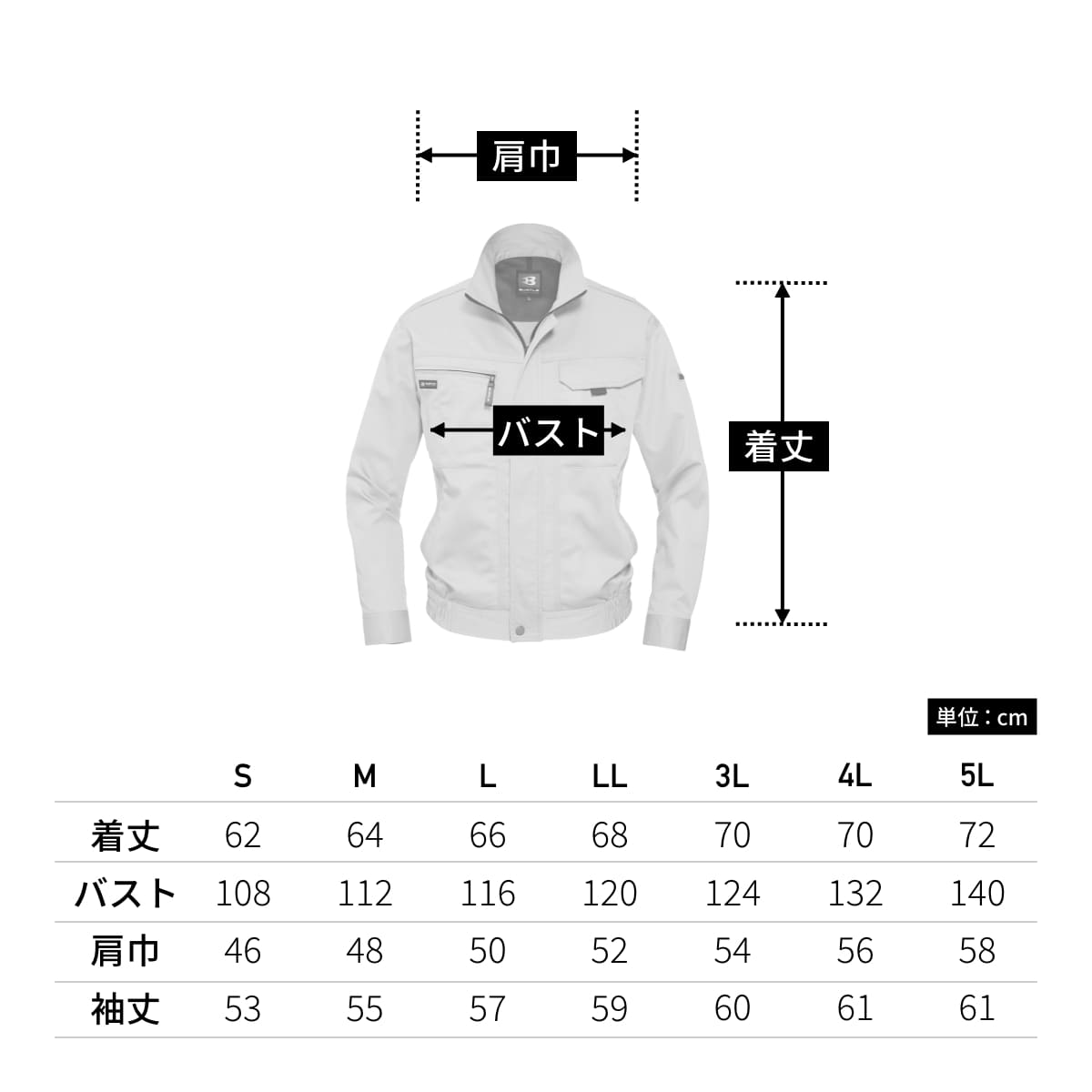 | 着丈 | 62 | 64 | 66 | 68 | 70 | 70 | 72 |