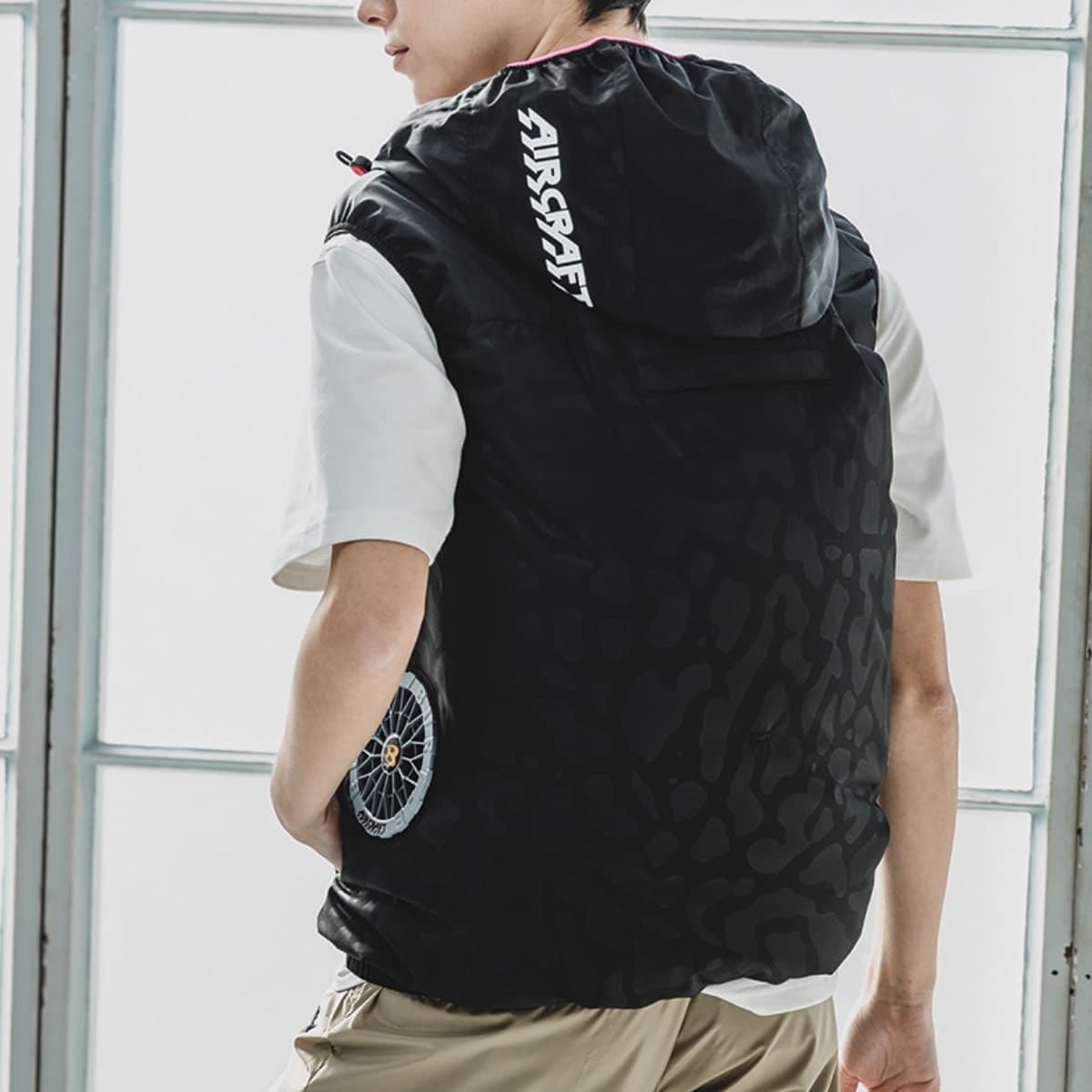 ・遮熱効果(-8度)に優れたアルミC加工と軽量、撥水性を備えたソフトシェル素材