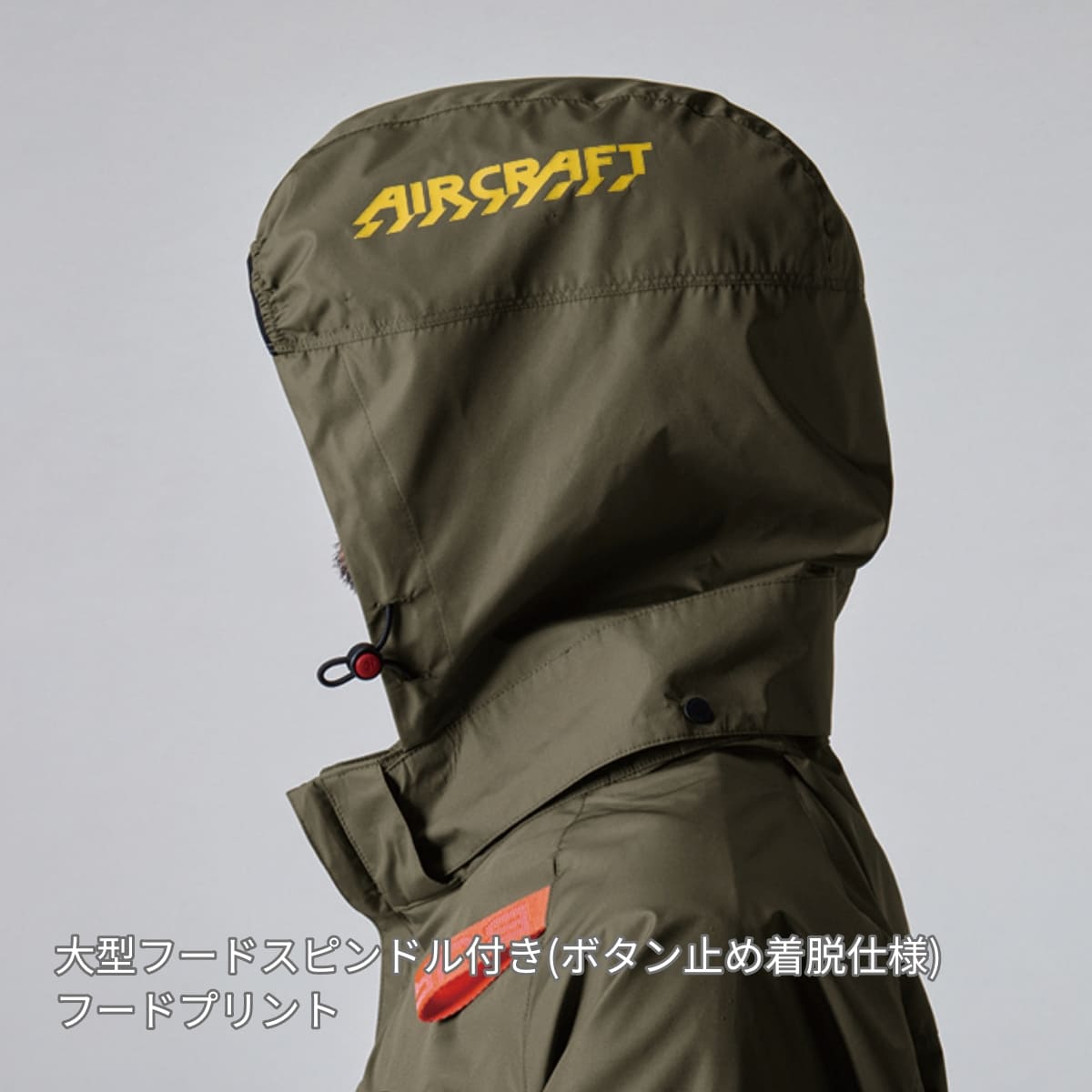 ・ヘルメット収納フード(着脱可能)、フックハンガー、背ランヤードホールを配備し