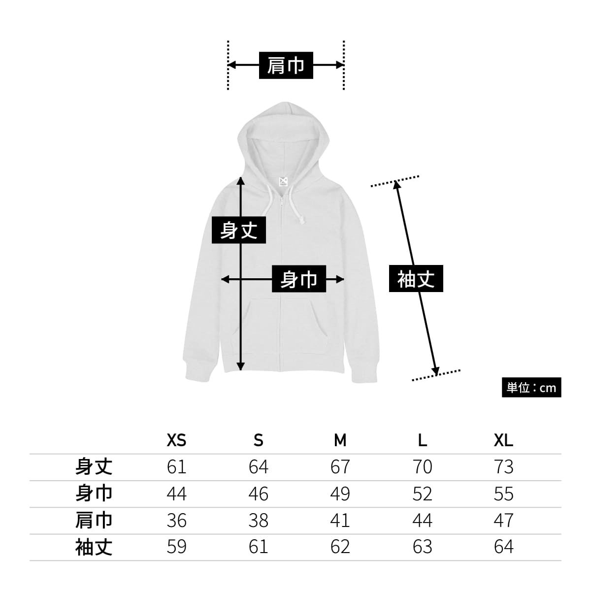 身丈 61 64 67 70 73