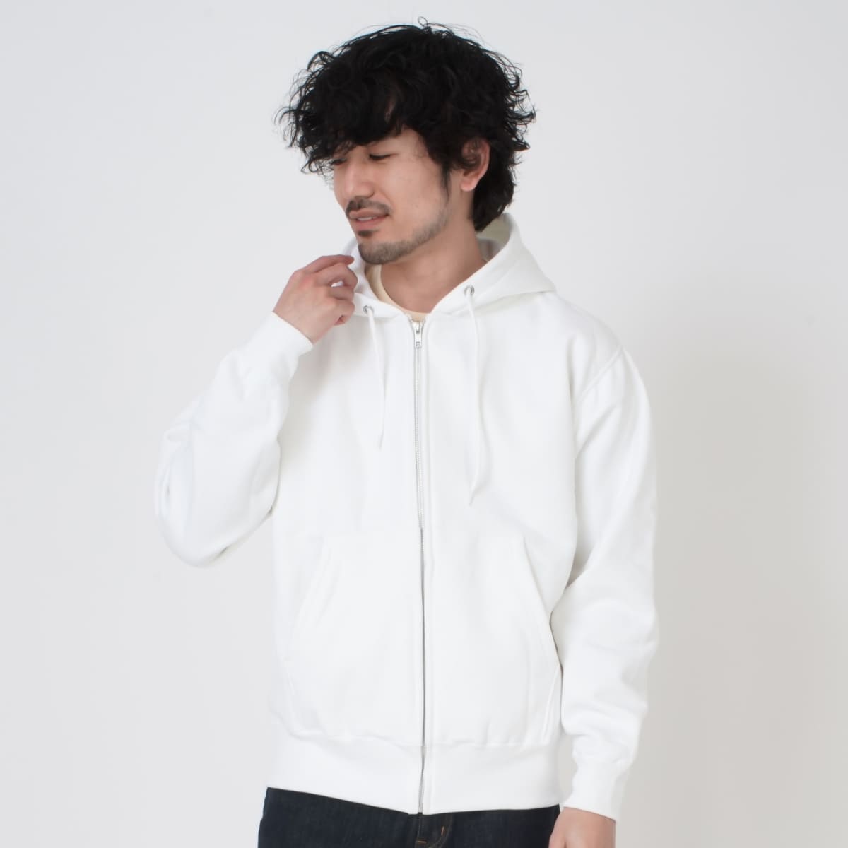 ![]() 12.4オンスの生地は、厚手でしっかりとした素材感。人気のジップアップパーカー フードは2重でしっかり立つので気になるバックスタイルも安心です。袖や裾のリブ幅も大きめで着心地を重視したデザインになっています。使いやすい定番カラーや明るい人気色も揃えています。Sから3XLまでのメンズサイズに加え、お子様や女性におすすめのJr.Lサイズもご用意しています。 |