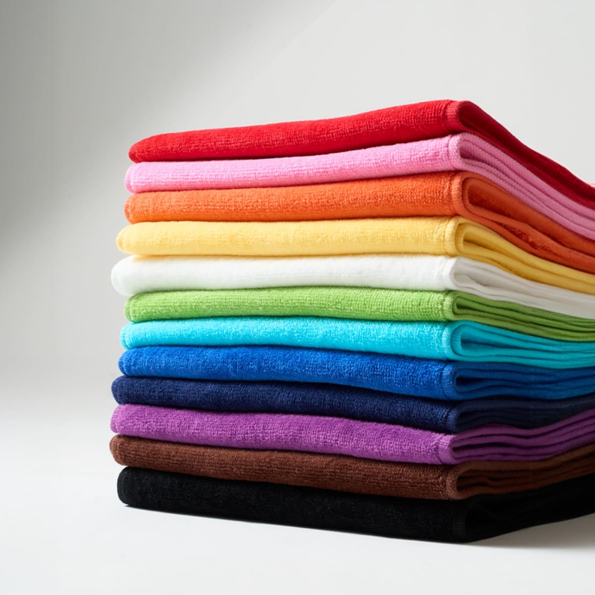 鮮やかな濃色カラーが映える、今治生産の高品質タオル。