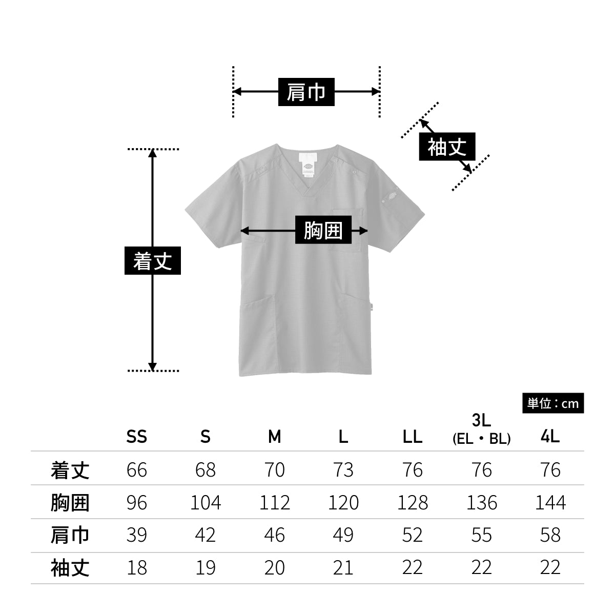 | 袖丈 | 18 | 19 | 20 | 21 | 22 | 22 | 22 |