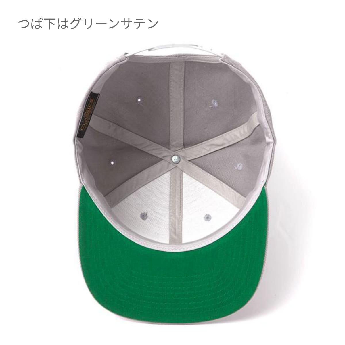 フラットバイザースナップバックつば下は緑サテン素材が使用されたアメリカンスタイルを感じられるキャップです