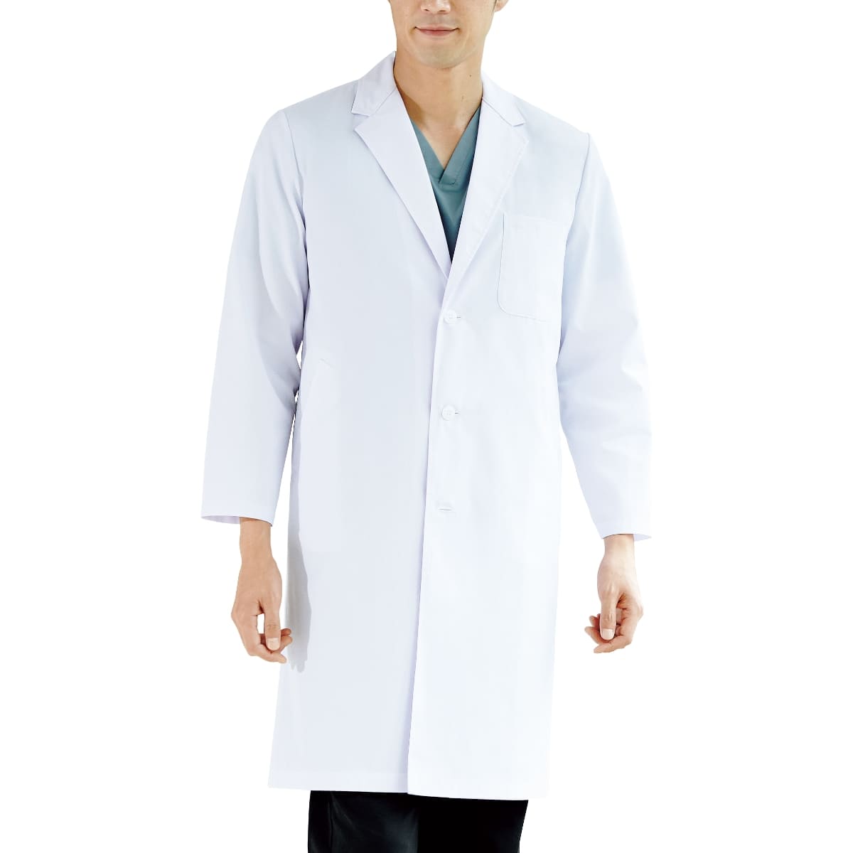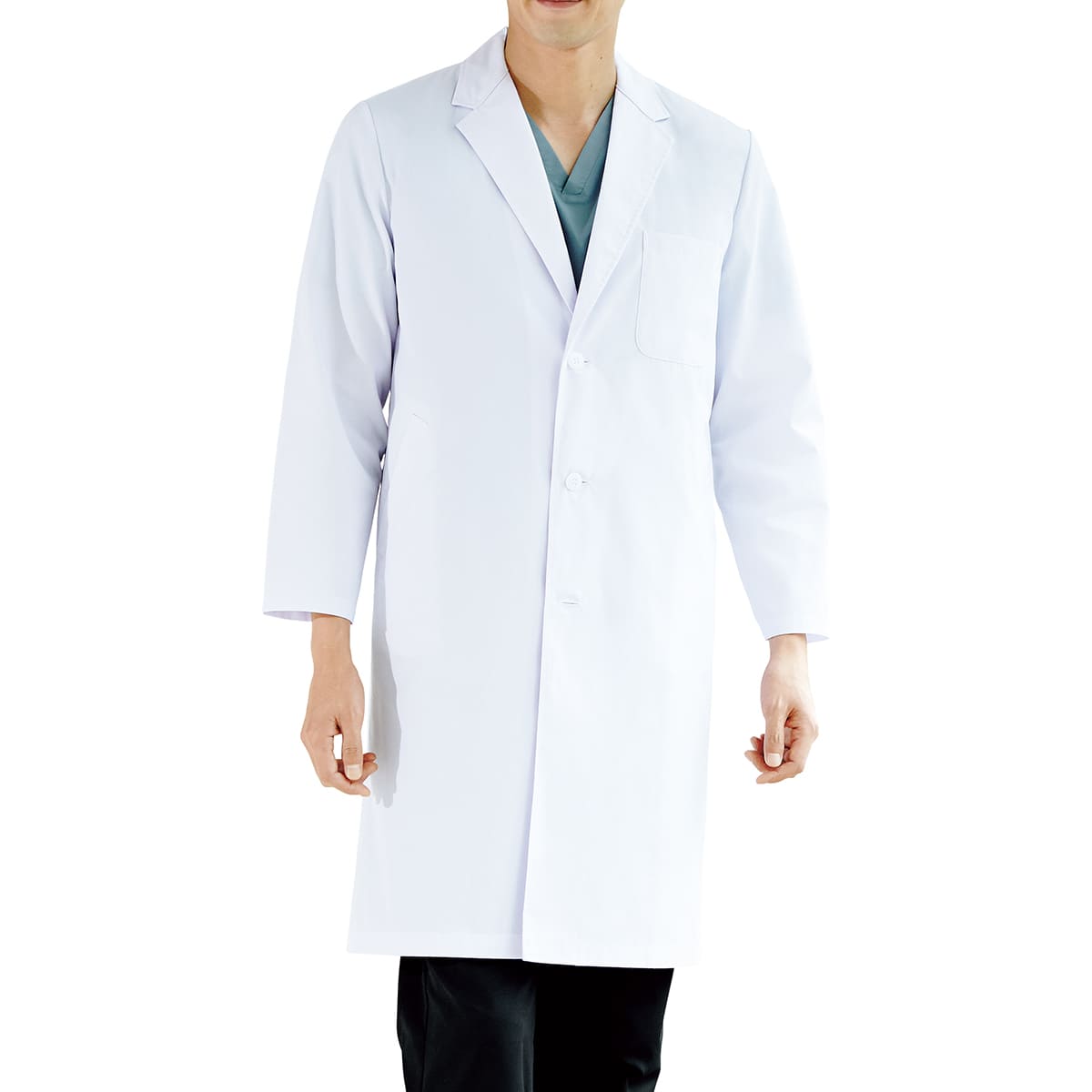 ベーシックな三つボタンの男性用シングルドクターコート