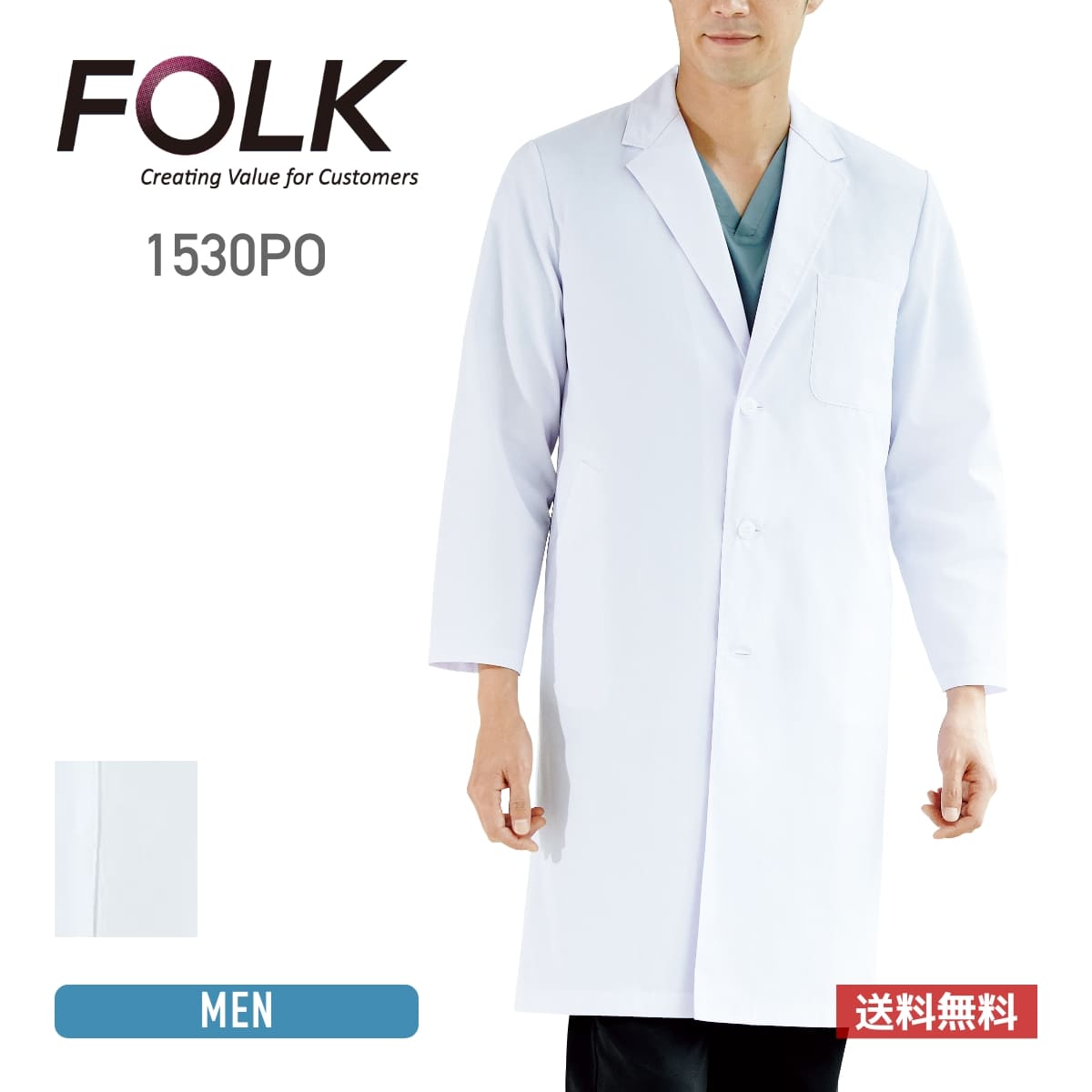 メンズ 男性 フォーク FOLK ドクタージャケット 長袖 白衣 ポプリン ポリエステル 綿 3つボタン ベーシック 医療 介護 福祉 手術衣 看護 施設 診察 診察着 現場 企業 学生 研修医 医師 ドクター 歯科医師 歯科衛生士 介護施設 訪問介護 接骨院 整体 リハビリ 理学療法士 クリニック 獣医 動物病院 ケアワーカー 仕事着 ワーク ユニフォーム 制服 ケア メディカル ユニフォーム サイズ豊富