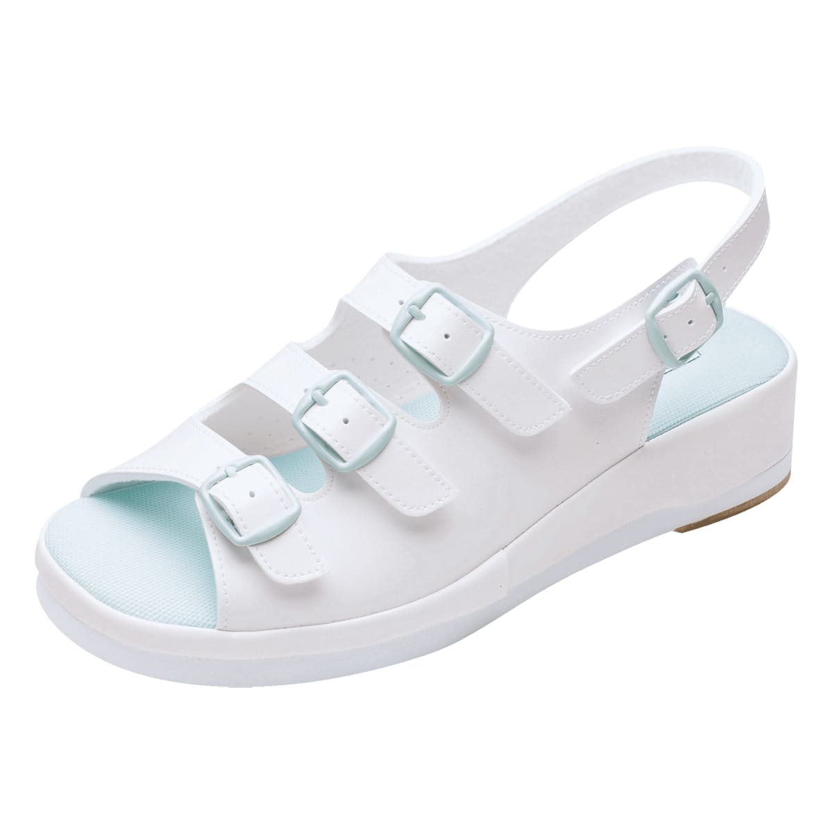 足の甲に3つ、かかとに1つと合計4つのバックルで、自分の足にぴったりと合わせることができるコンフォートサンダル。足幅は広いけれど、甲の厚みは薄い足。甲高の足、細身の足、大きめの足などあらゆる足にぴったりフィットします。ホワイトは男女兼用で履くことができ、ブルーとピンクは女性向けのサイズ展開に。抗菌・防臭加工で雑菌や臭い、汚れ等を最小限に抑えてくれるうれしい機能が満載のコンフォートサンダルです。